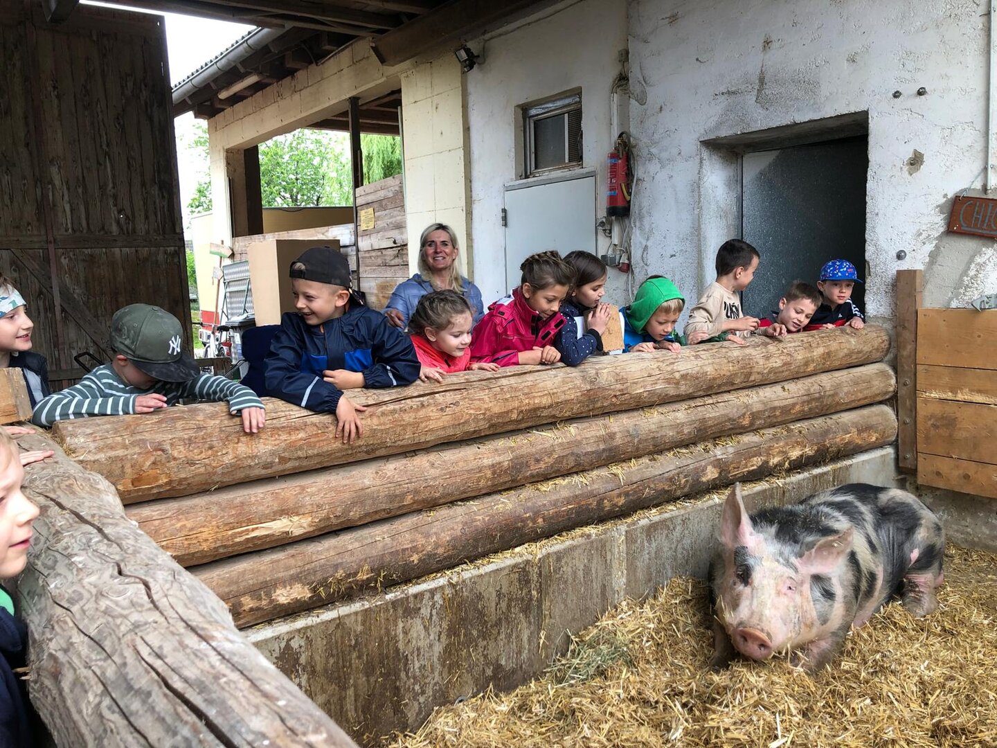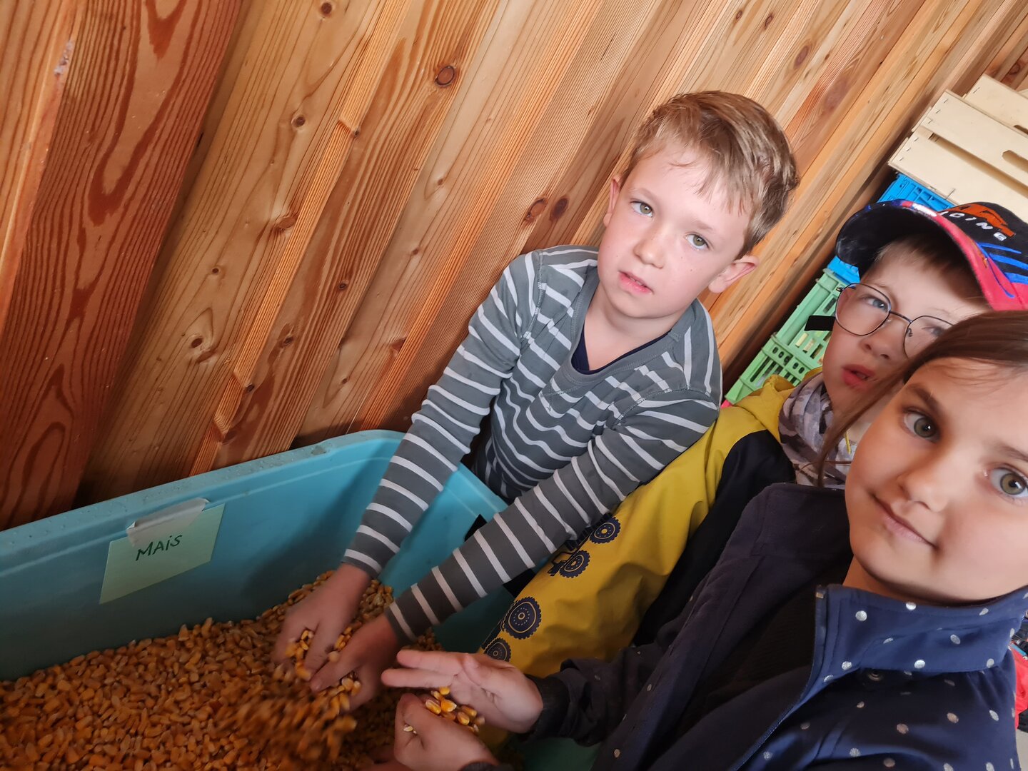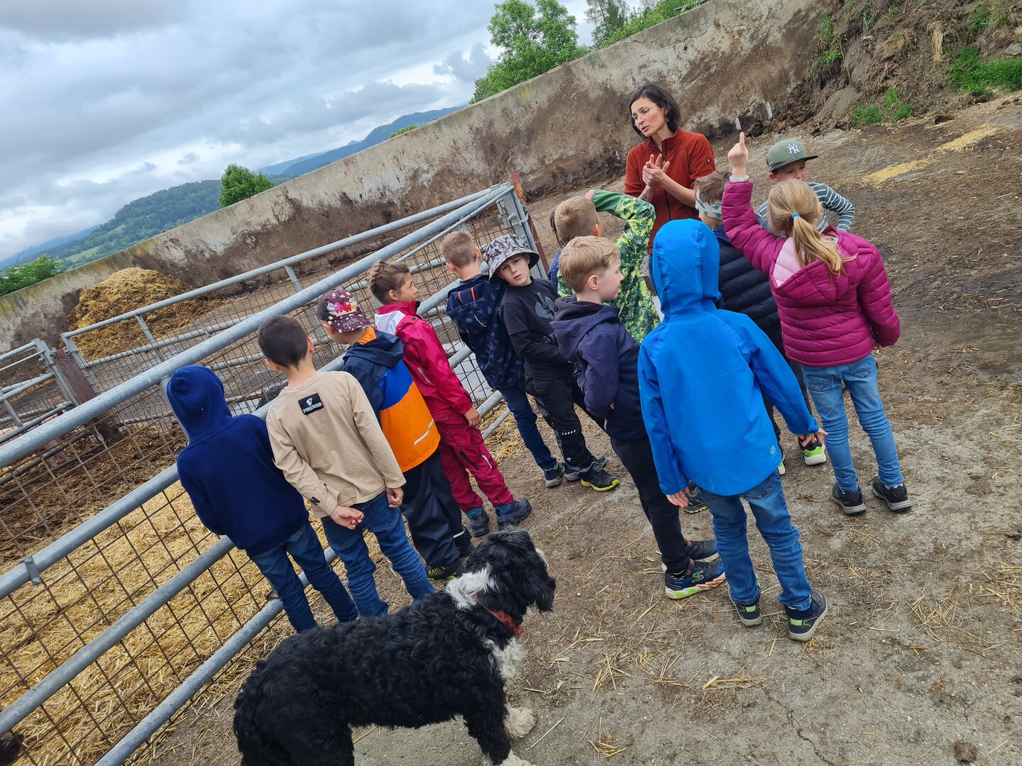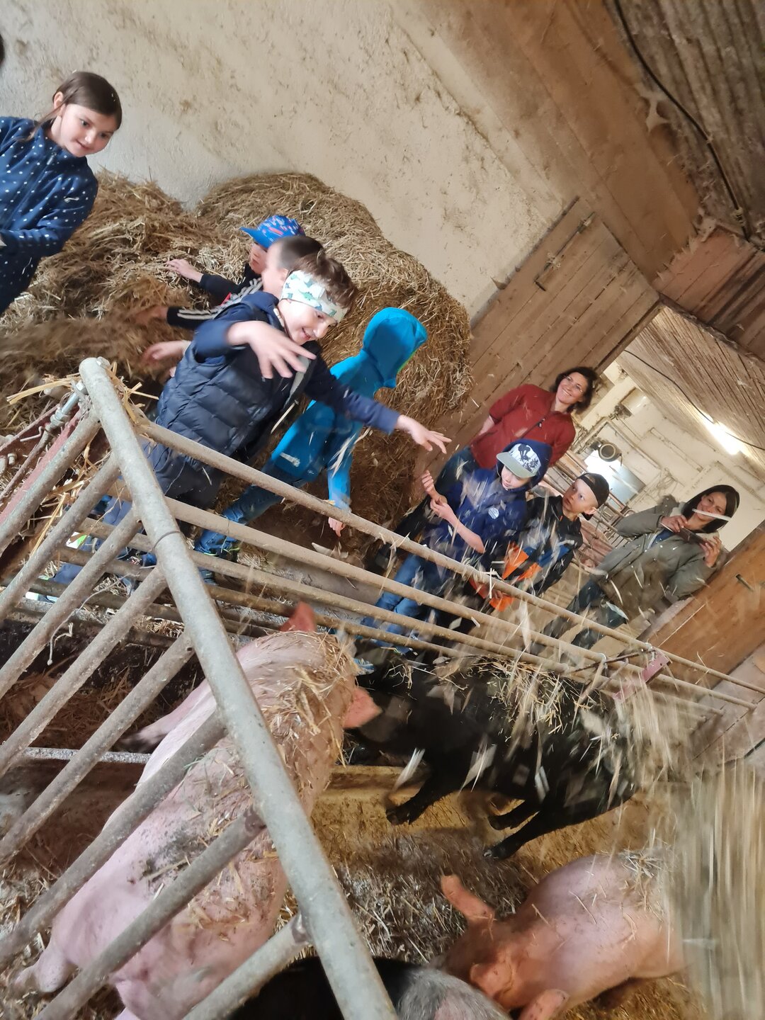 Die beiden ersten Klassen konnten gemeinsam den Biobauernhof "Adamhof" besuchen, Teig kneten, Brot backen, Haltungsformen von Nutztieren kennenlernen, Getreidearten spielerisch erforschen, den Schweinen Stroh geben und vieles mehr ...