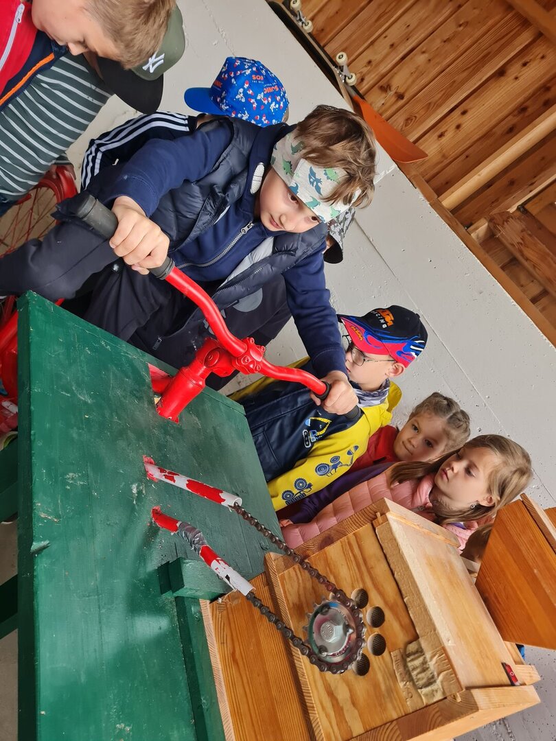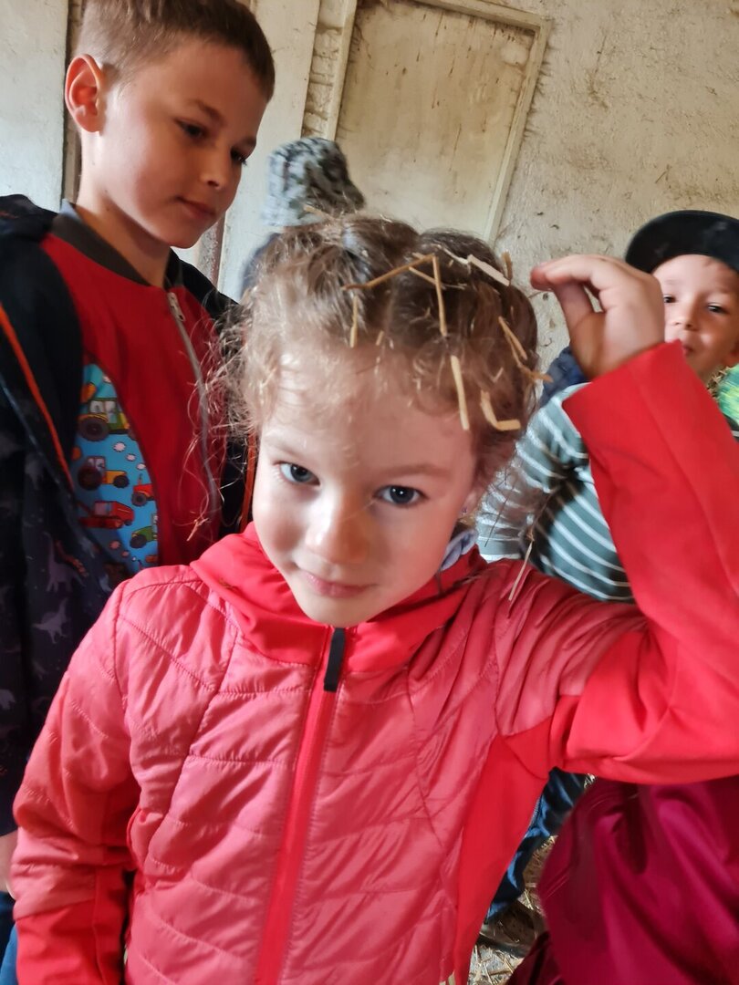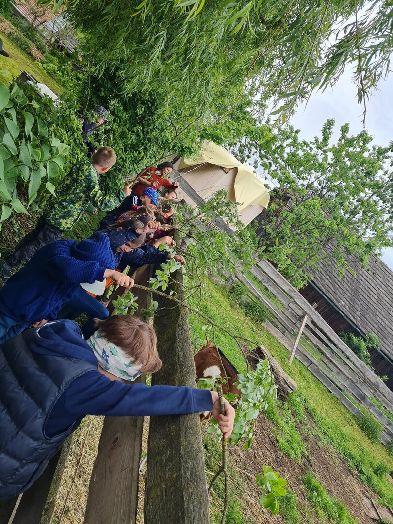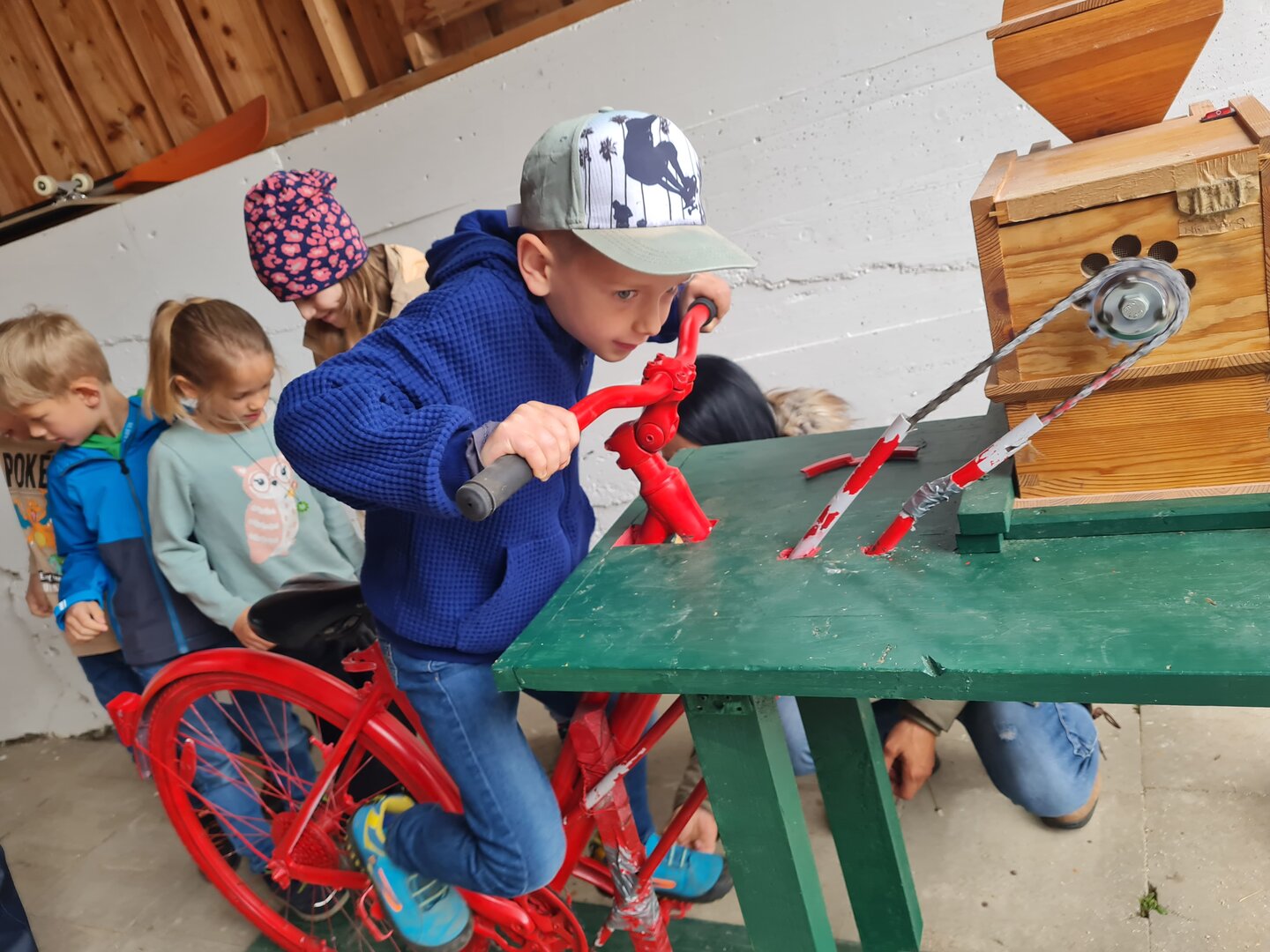 Die beiden ersten Klassen konnten gemeinsam den Biobauernhof "Adamhof" besuchen, Teig kneten, Brot backen, Haltungsformen von Nutztieren kennenlernen, Getreidearten spielerisch erforschen, den Schweinen Stroh geben und vieles mehr ...