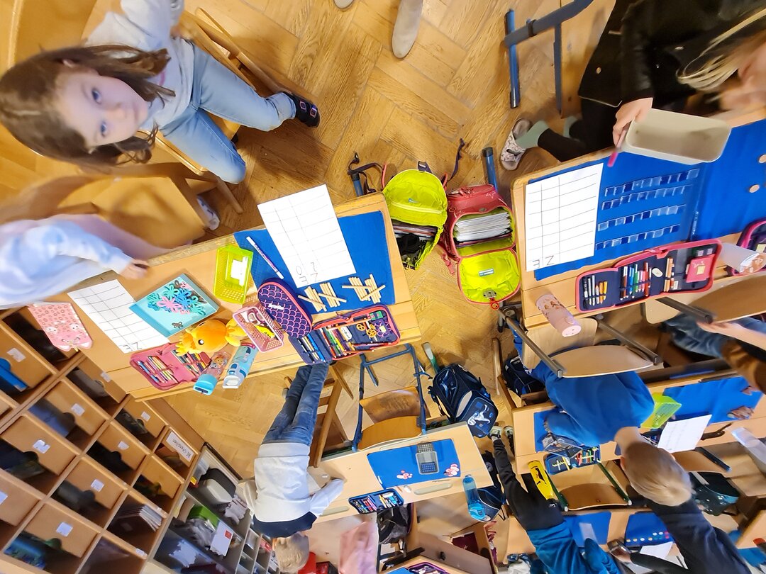 Eifrig waren alle beim Zählen, Legen und Notieren dabei!