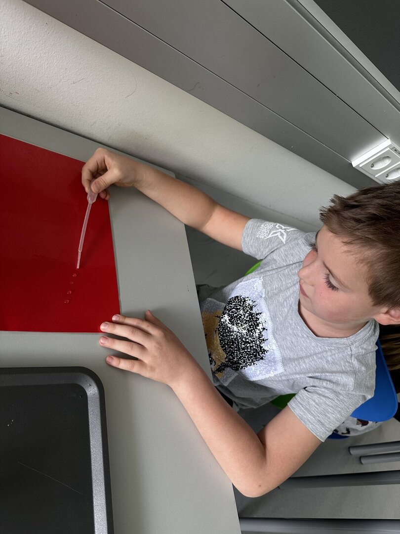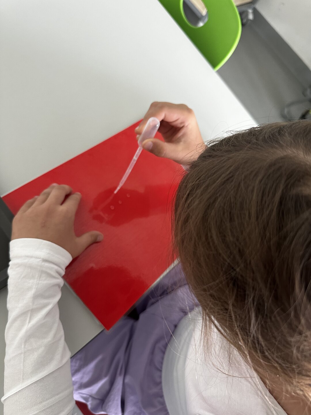Am 18.04. besuchte die 1b zum ersten Mal das BIKO. Das Thema war "Pipette". Wir durften die Pipette kennenlernen, unseren Namen tropfen und künstlerische Bilder darstellen. Auch die Lehrperson durfte experimentieren - und es war gar nicht so einfach!