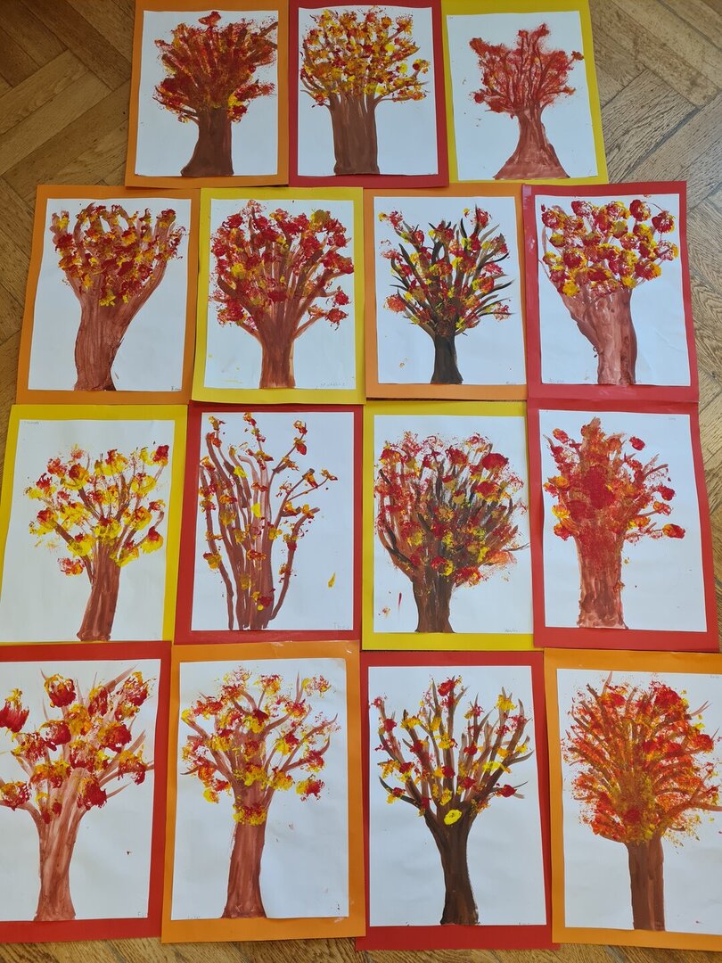 Die 2 a hat im Rahmen des KuGe-Unterrichts mit Herbstfarben experimentiert. (Acryltechnik)
