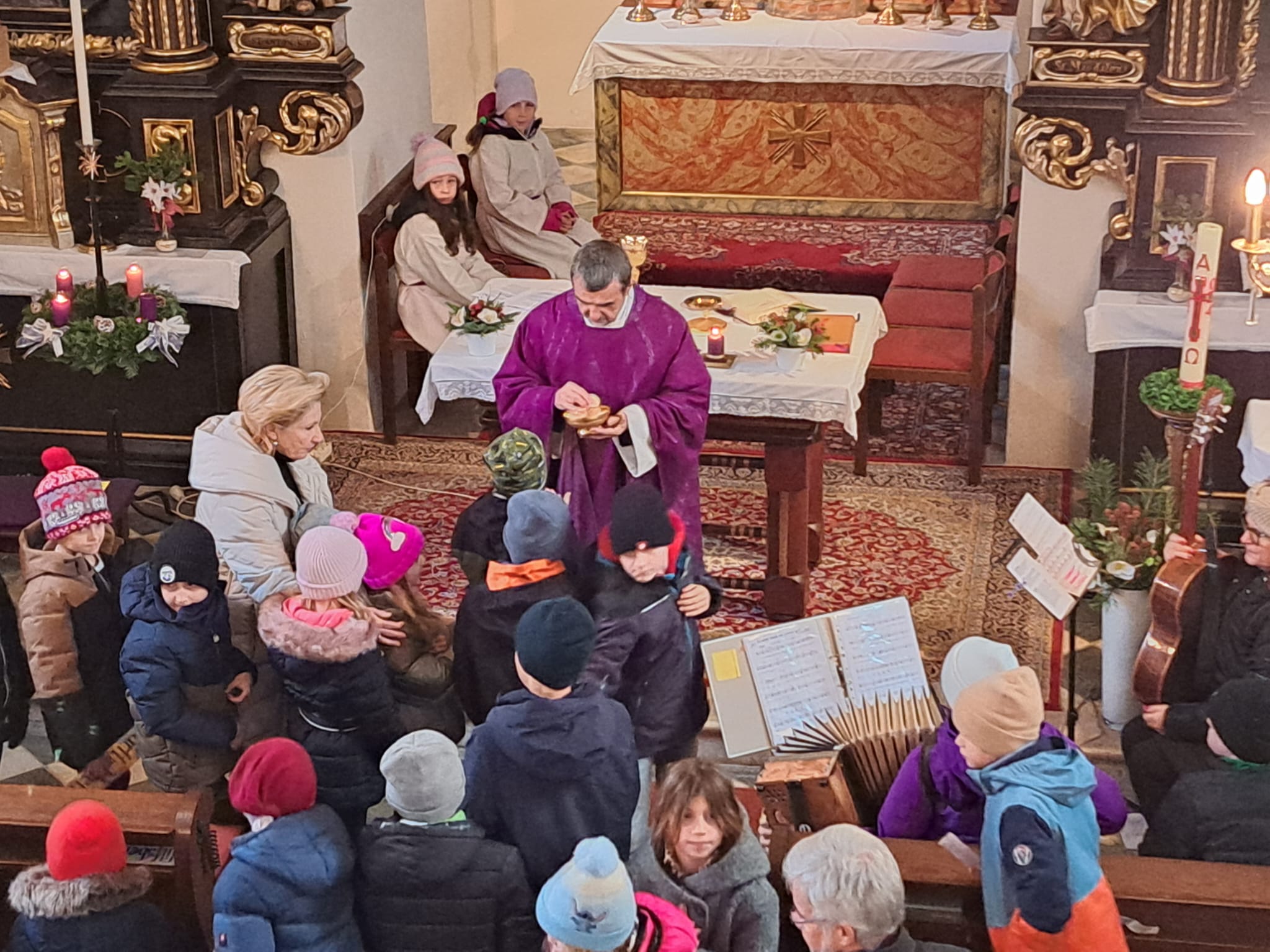 Am 3. Adventsonntag gestaltete unsere Religionslehrerin Maria Ruppacher mit den Erstkommunionskindern und Helfern aus den 4. Klassen (Frau Gratl Gitarrenbegleitung) die Adventmesse.