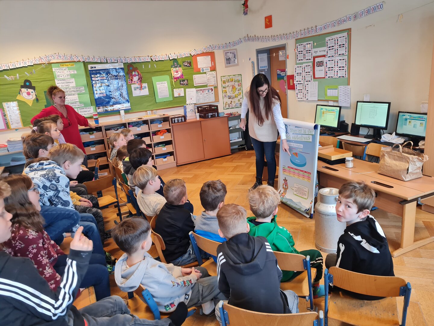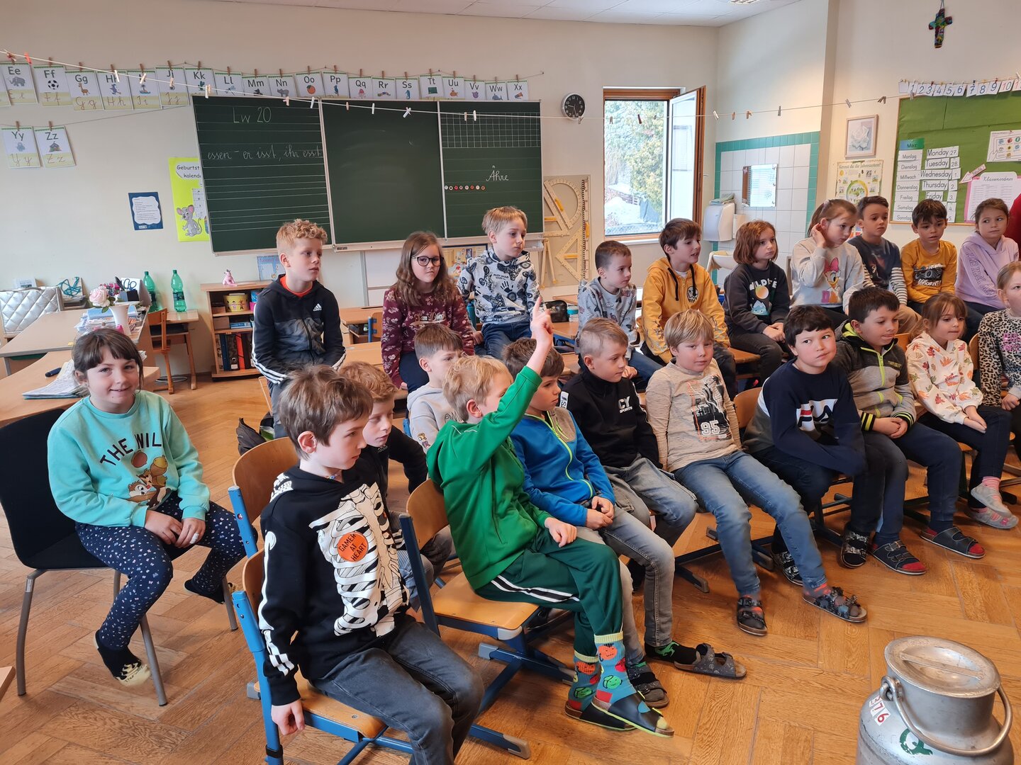 Im Rahmen von "Milch on Tour" konnten die 2a und 2b Erkenntnisse zur Herstellung von Milch erfahren.