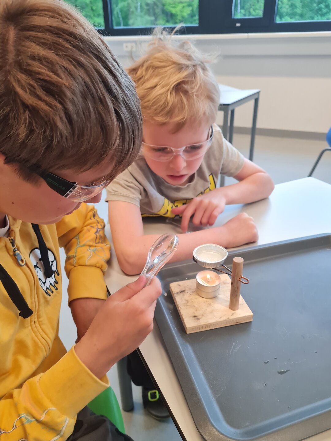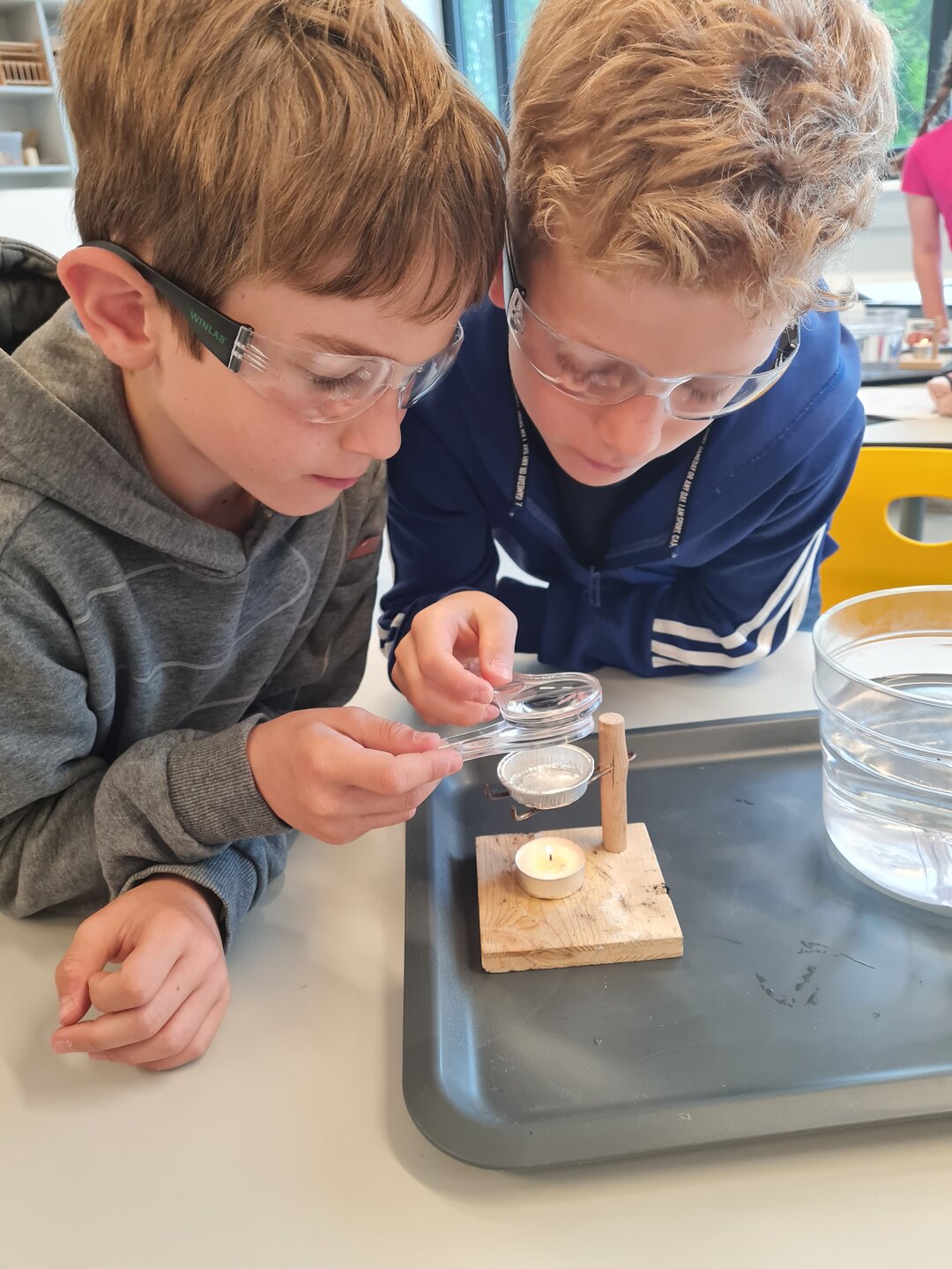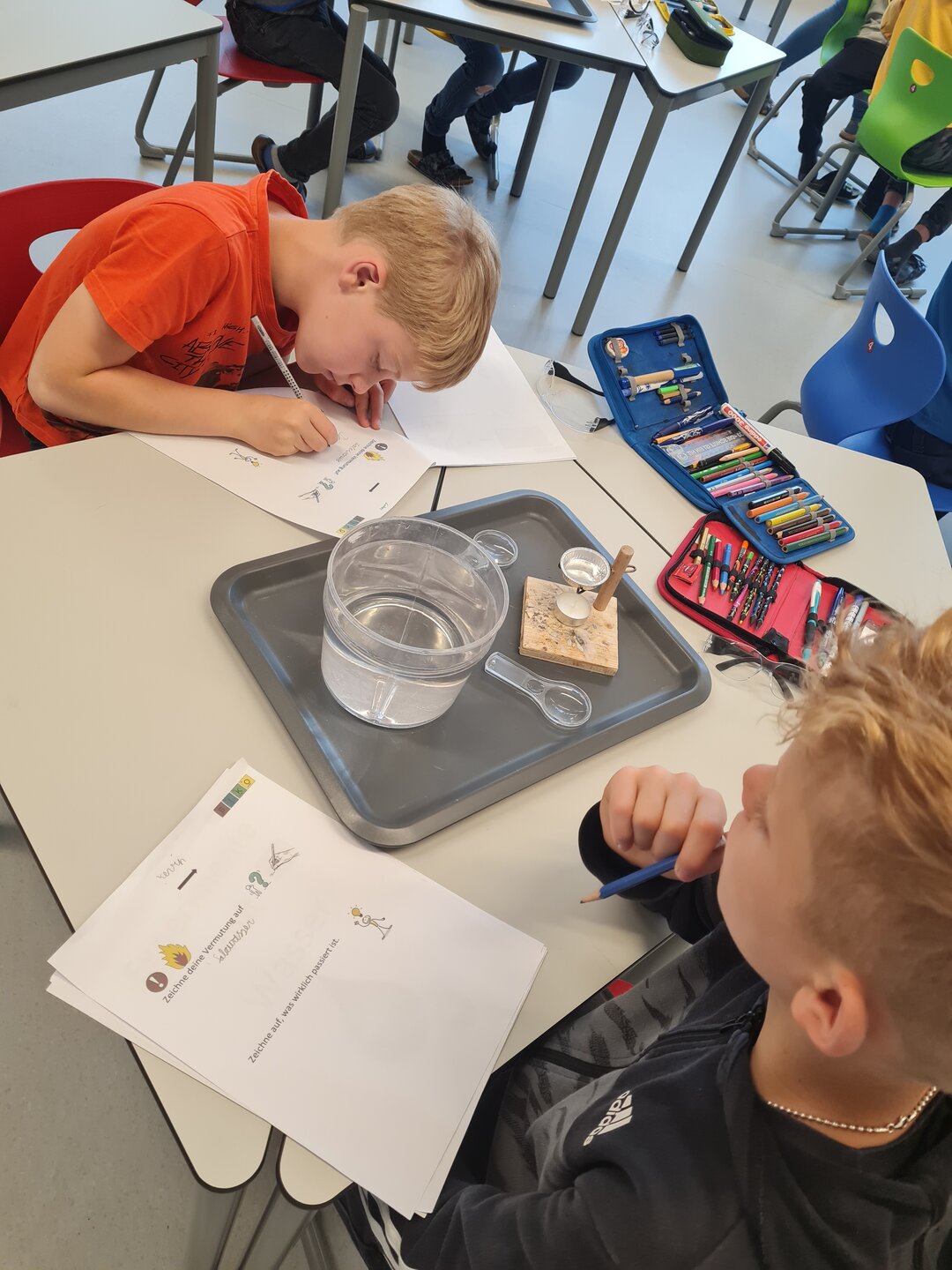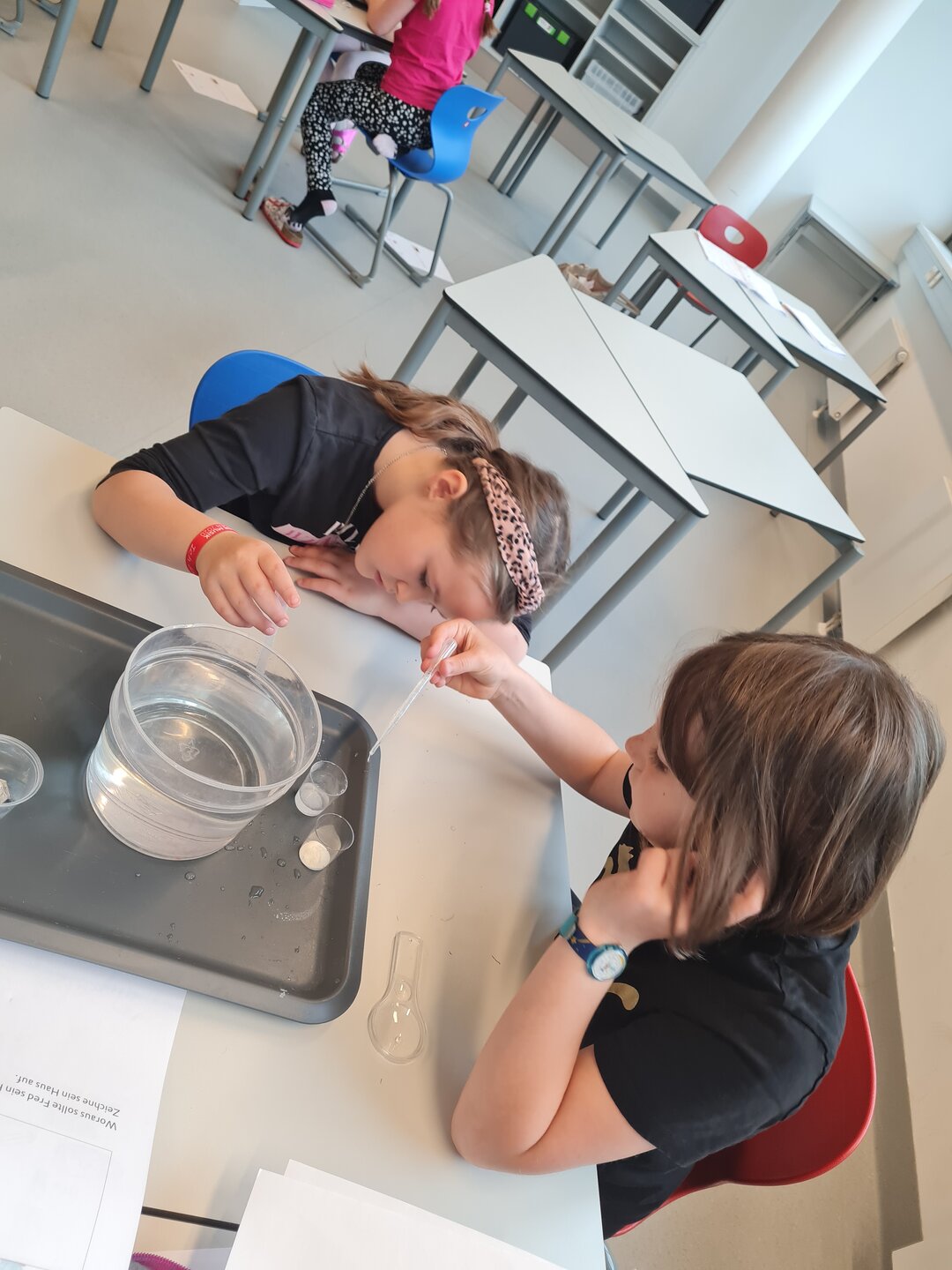 Die 2b forschte und experimentierte mit Salzwasser. Es wurden Vermutungen aufgestellt (Verschwindet das Salz/Watte/Zucker/Sand, wenn das Wasser verdunstet ...?) und einiges erstaunlich festgestellt bzw. erkannt. Genial war das Hantieren mit Lupe, Pipette und verschiedensten Materialien bzw. Stoffen.