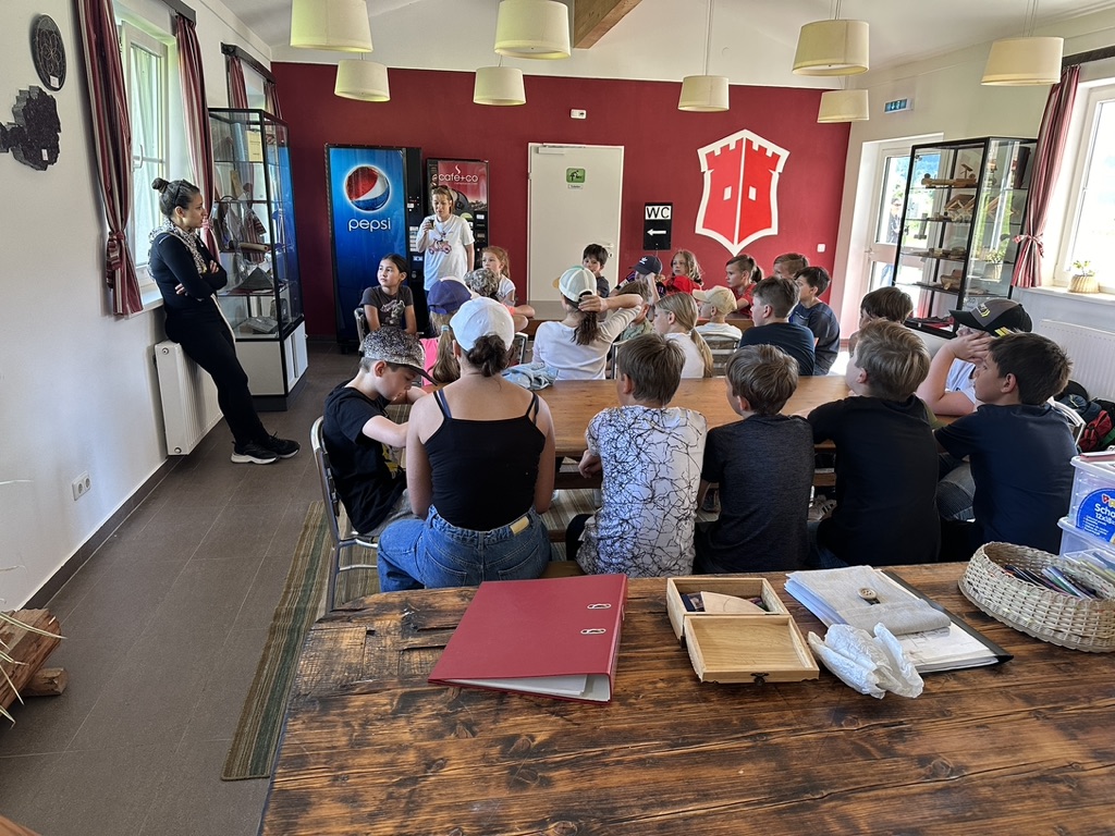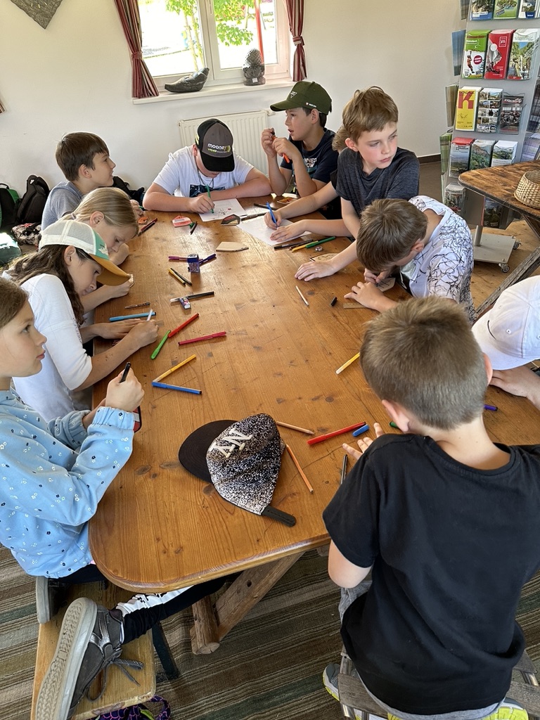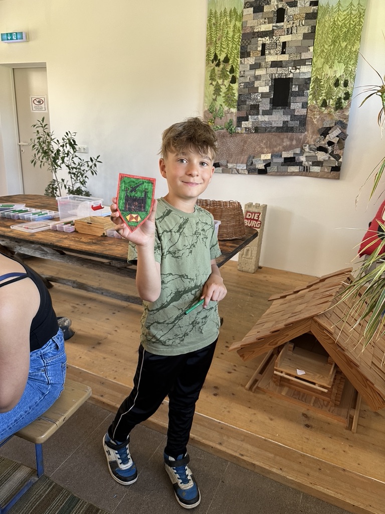 Zuerst erfuhren die Kinder Wissenswertes über das Mittelalter, danach konnten sie ihr eigenes Wappen gestalten und anschließend gab es noch eine Führung durch den Burgbaubetrieb. Der Ausflug ins Mittelalter hat allen Spaß gemacht!