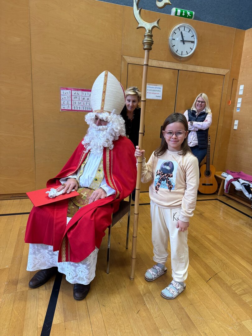 Gegen Schulende besuchte uns dann auch noch der heilige Nikolaus. Die SchülerInnen haben gesungen, getanzt und Gedichte vorgetragen. Als Dank dafür hat jedes Kind einen Mandarine vom Nikolaus geschenkt bekommen. Danke an den Spender Herrn Napetschnig!