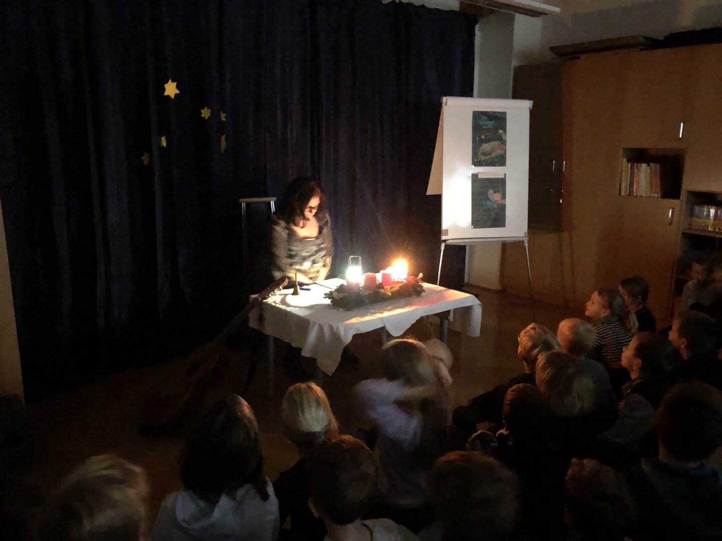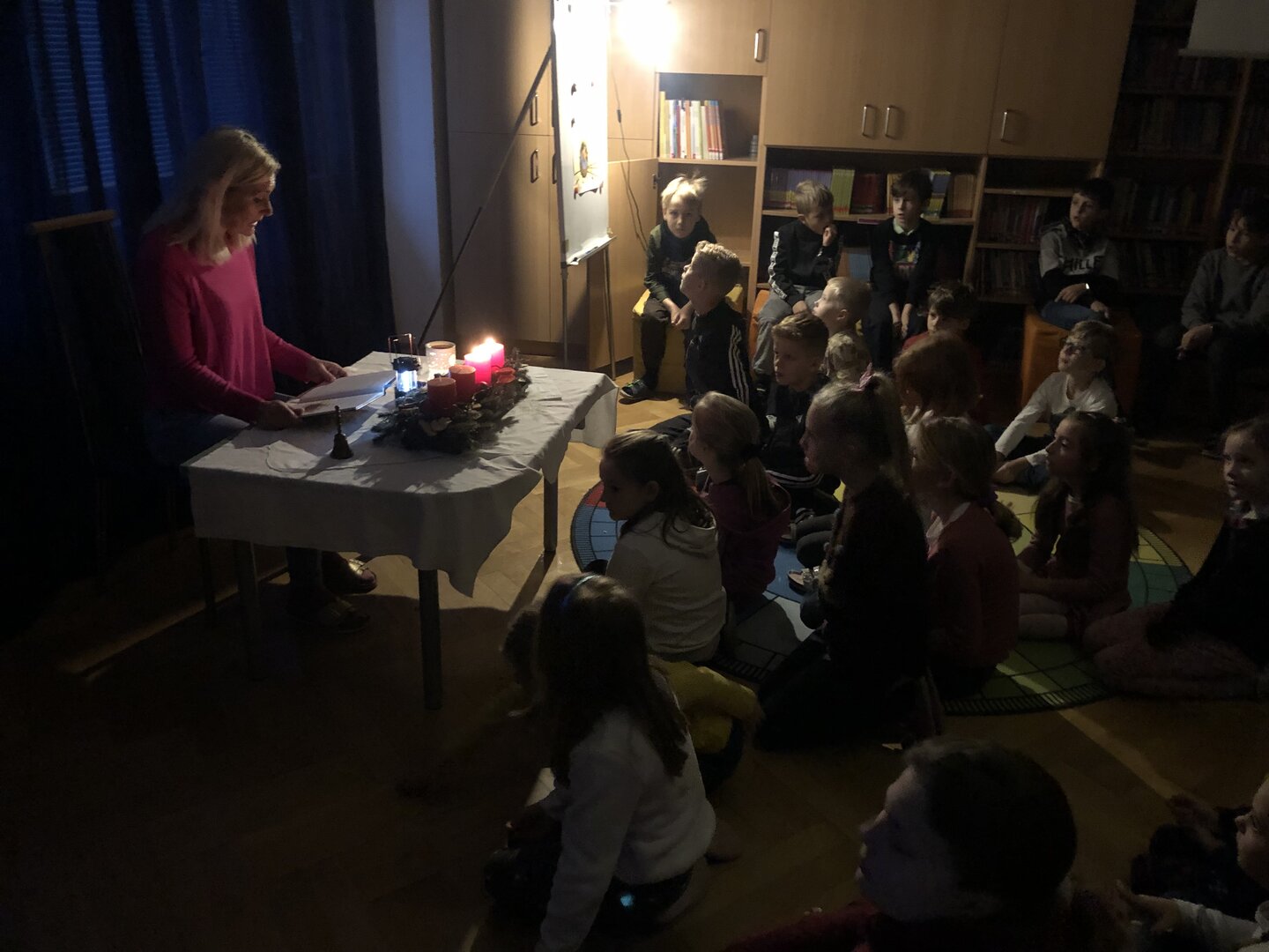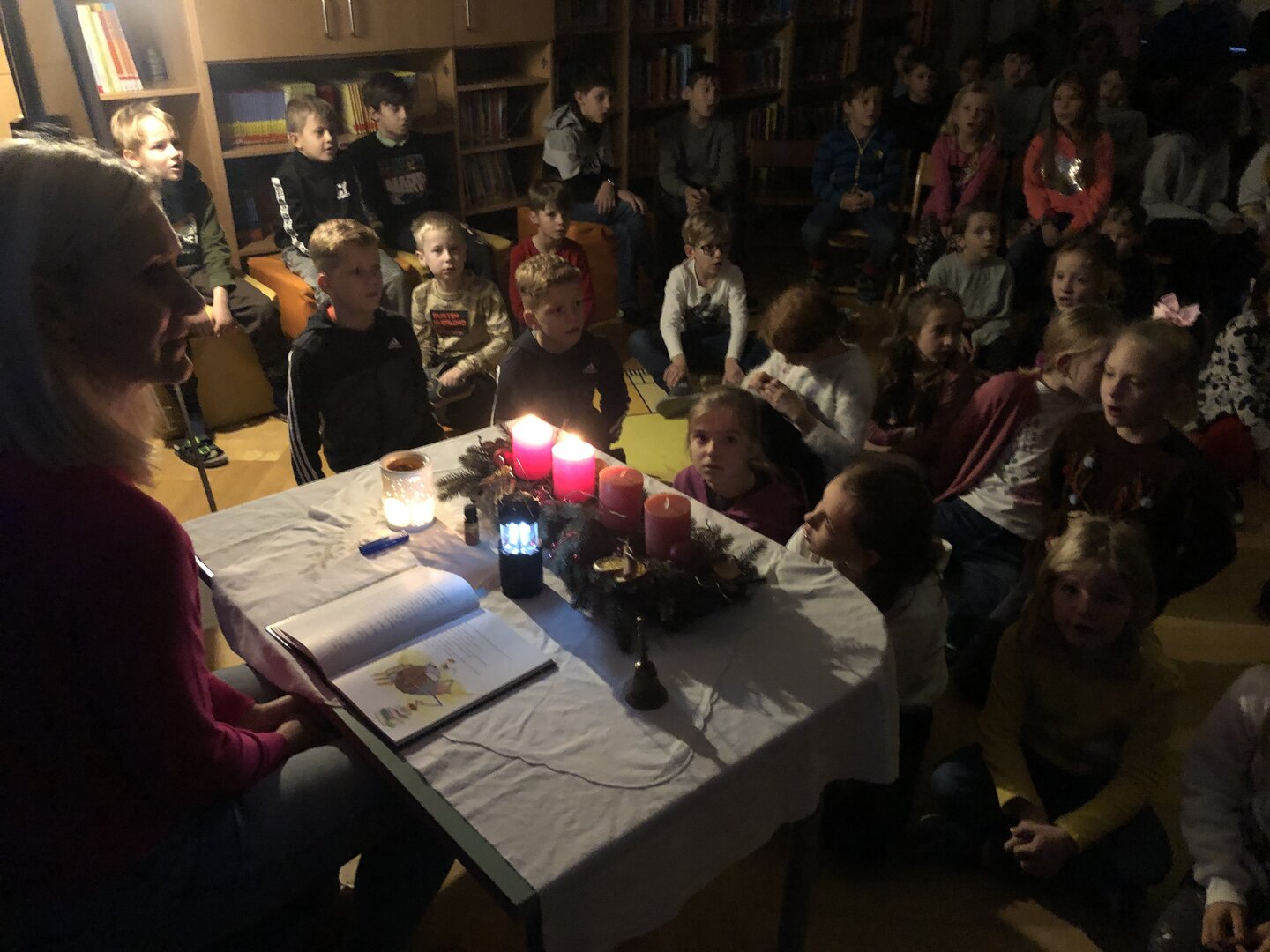 3. Advent - wir weichen der Buchausstellung in der Bibliothek, sind aber ganz Ohr was die Fliege Bizzi, der vermeintliche Weihnachtsbraten, mit der Spinne Karl erlebt.