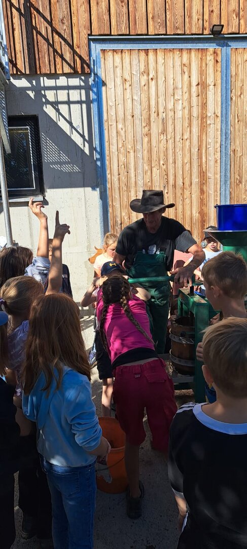 Am 19.9. fuhren die dritten Klassen auf den Bauernhof der Familie Jakopitsch nach Moosburg. Es wurden Äpfel gesammelt, gewaschen, gepresst und anschließend der Apfelsaft in Flaschen gefüllt.