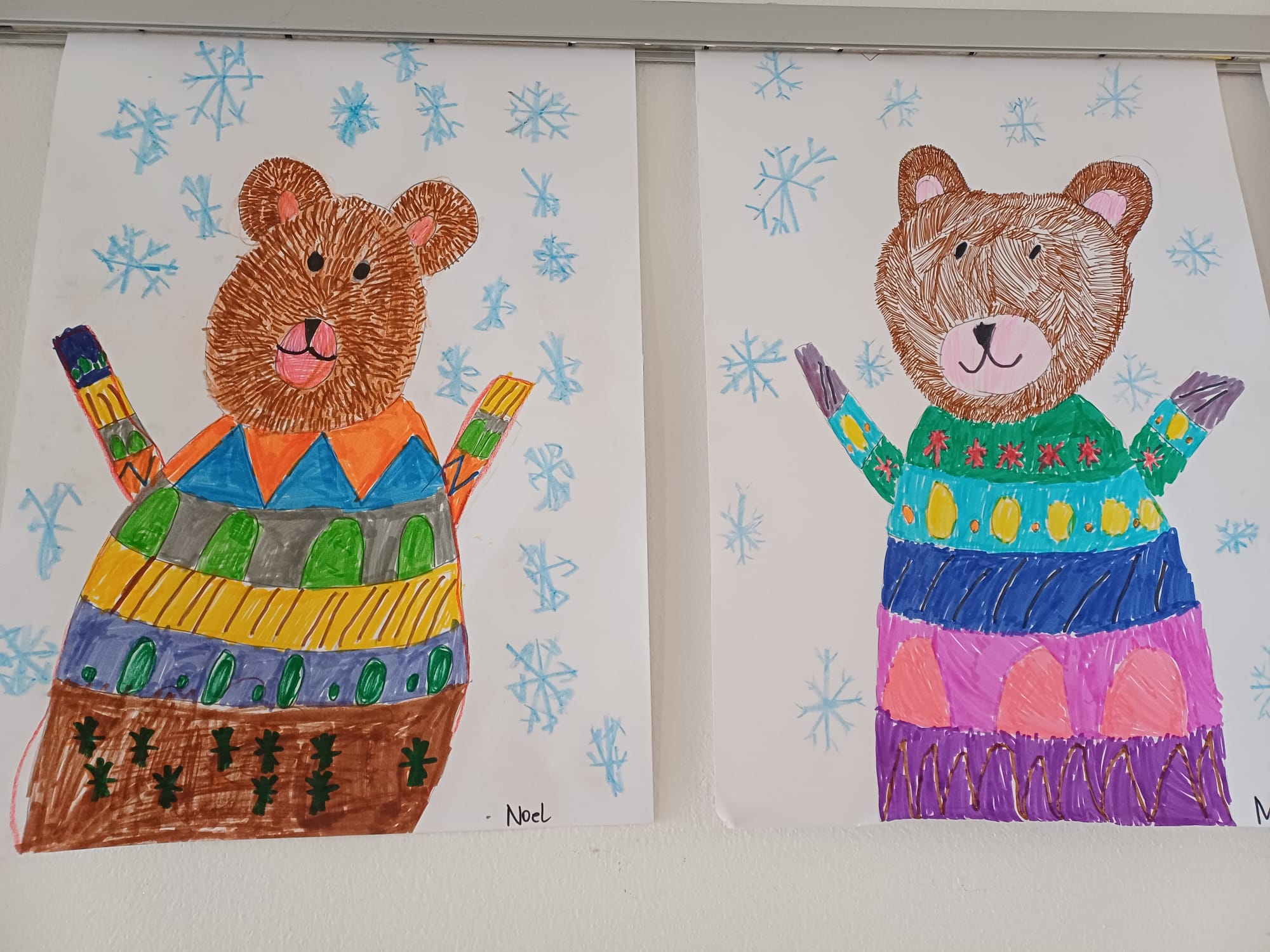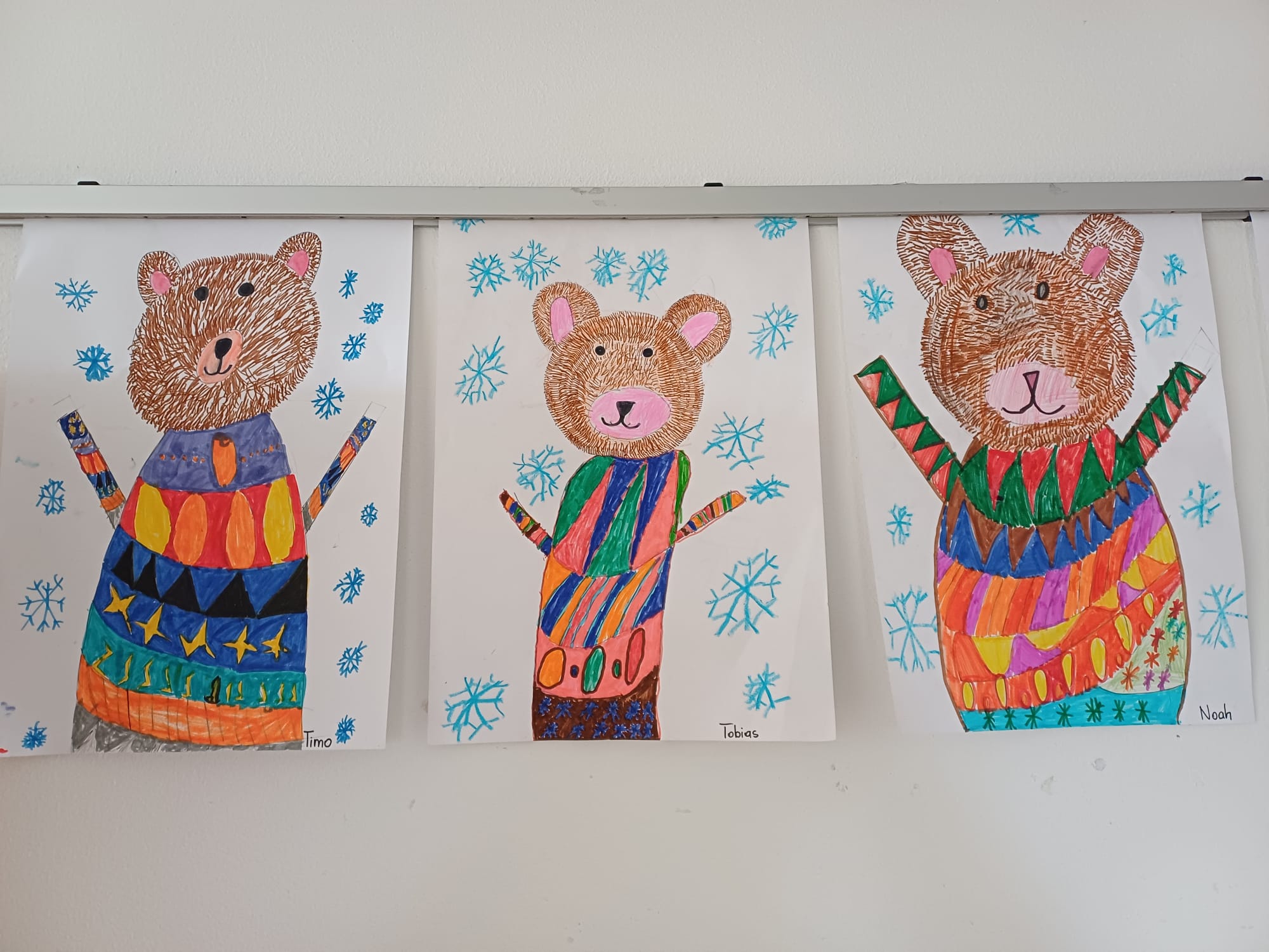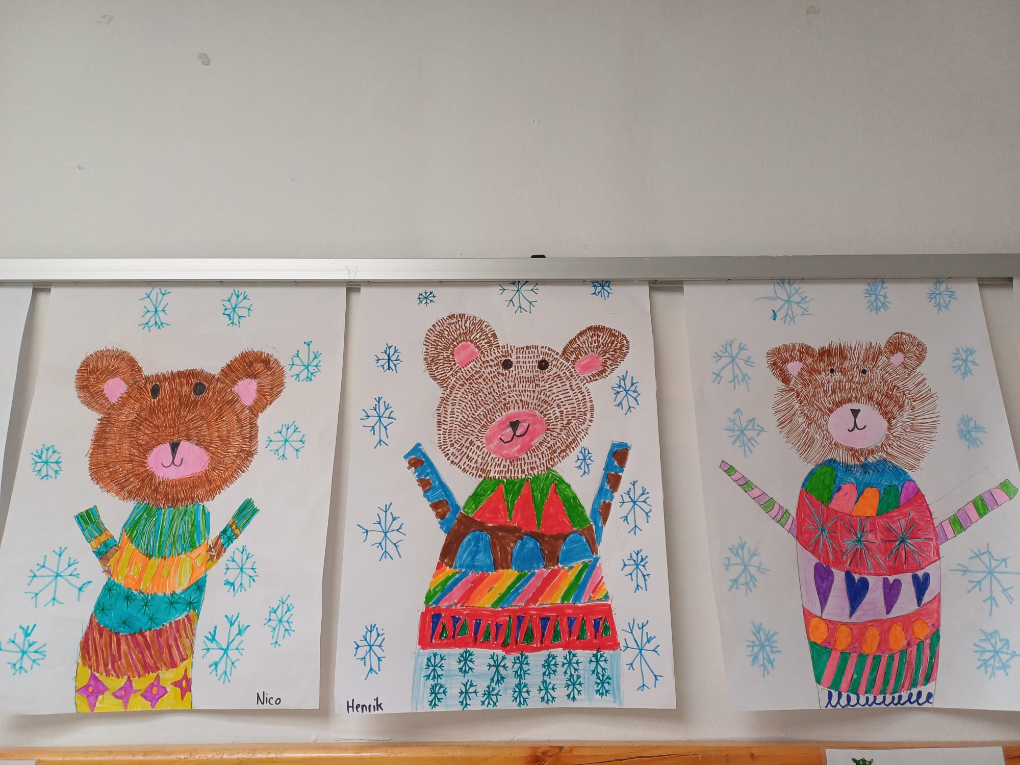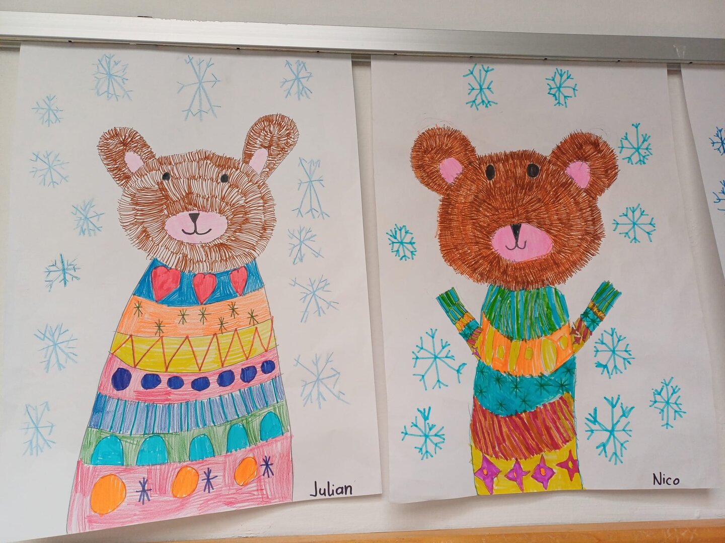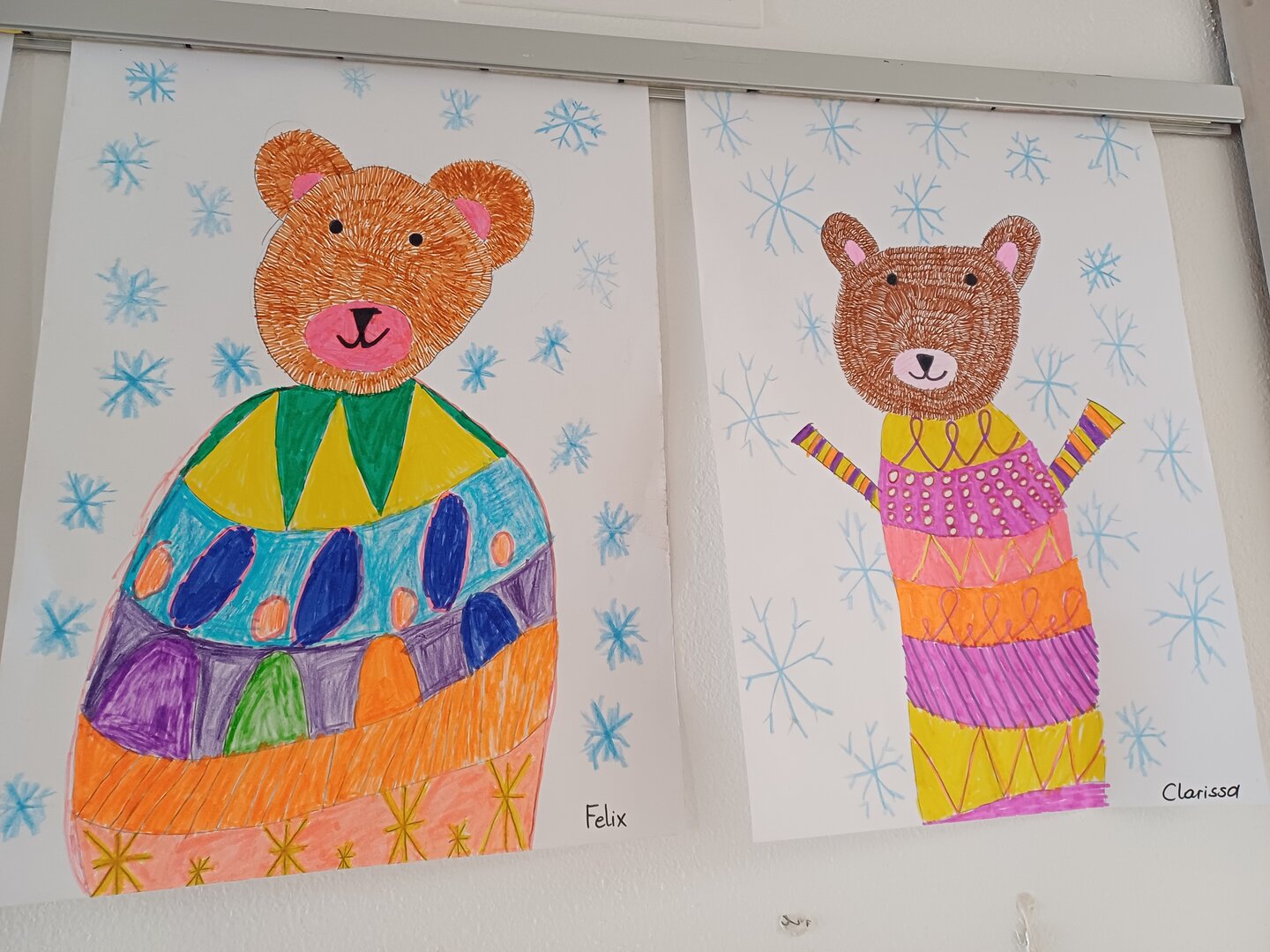 Mit viel Freude und Spaß entstanden mit Filzstiften lustige und bunte Pullis für die Bären.