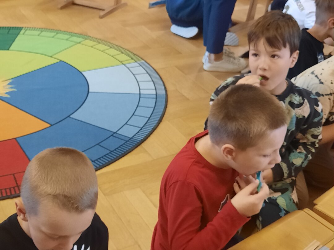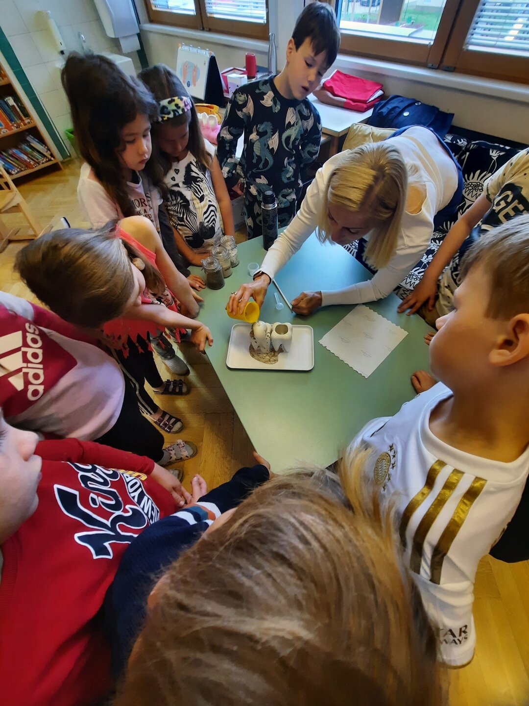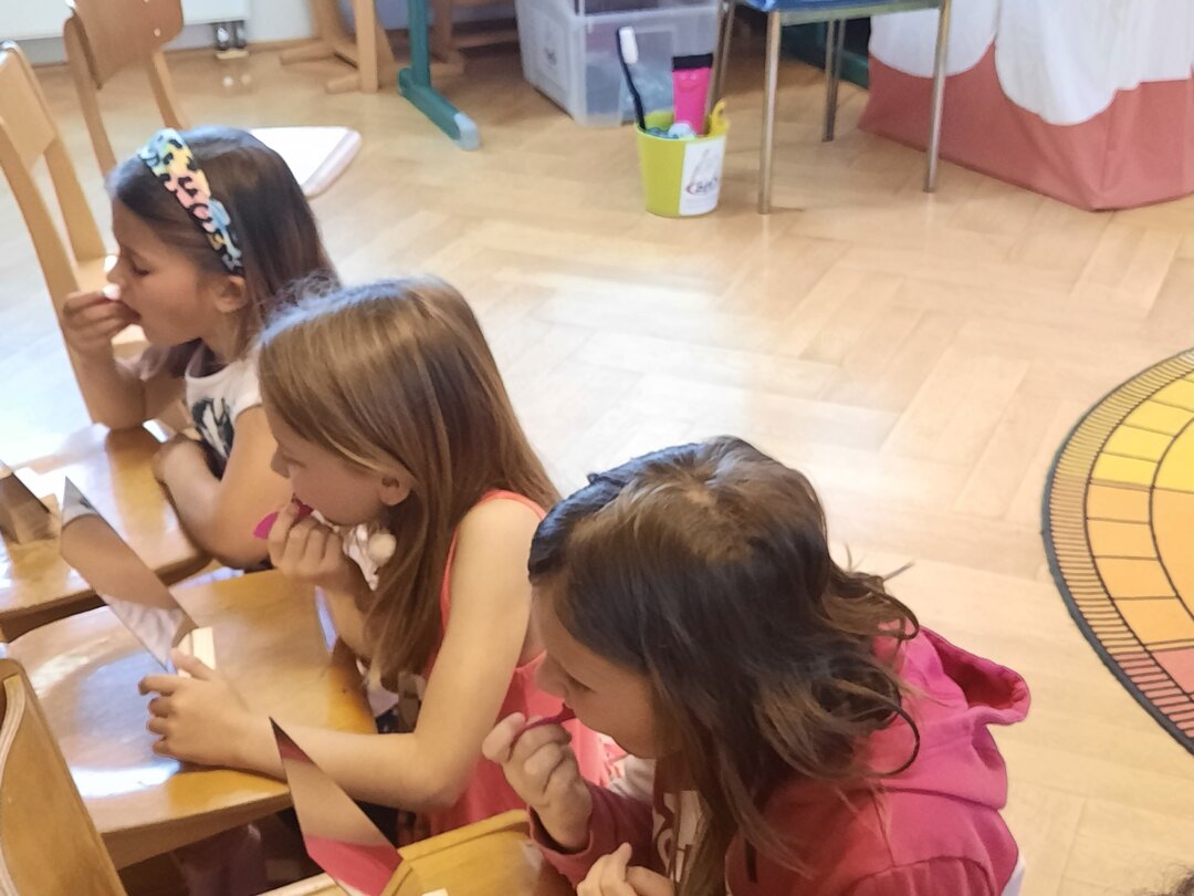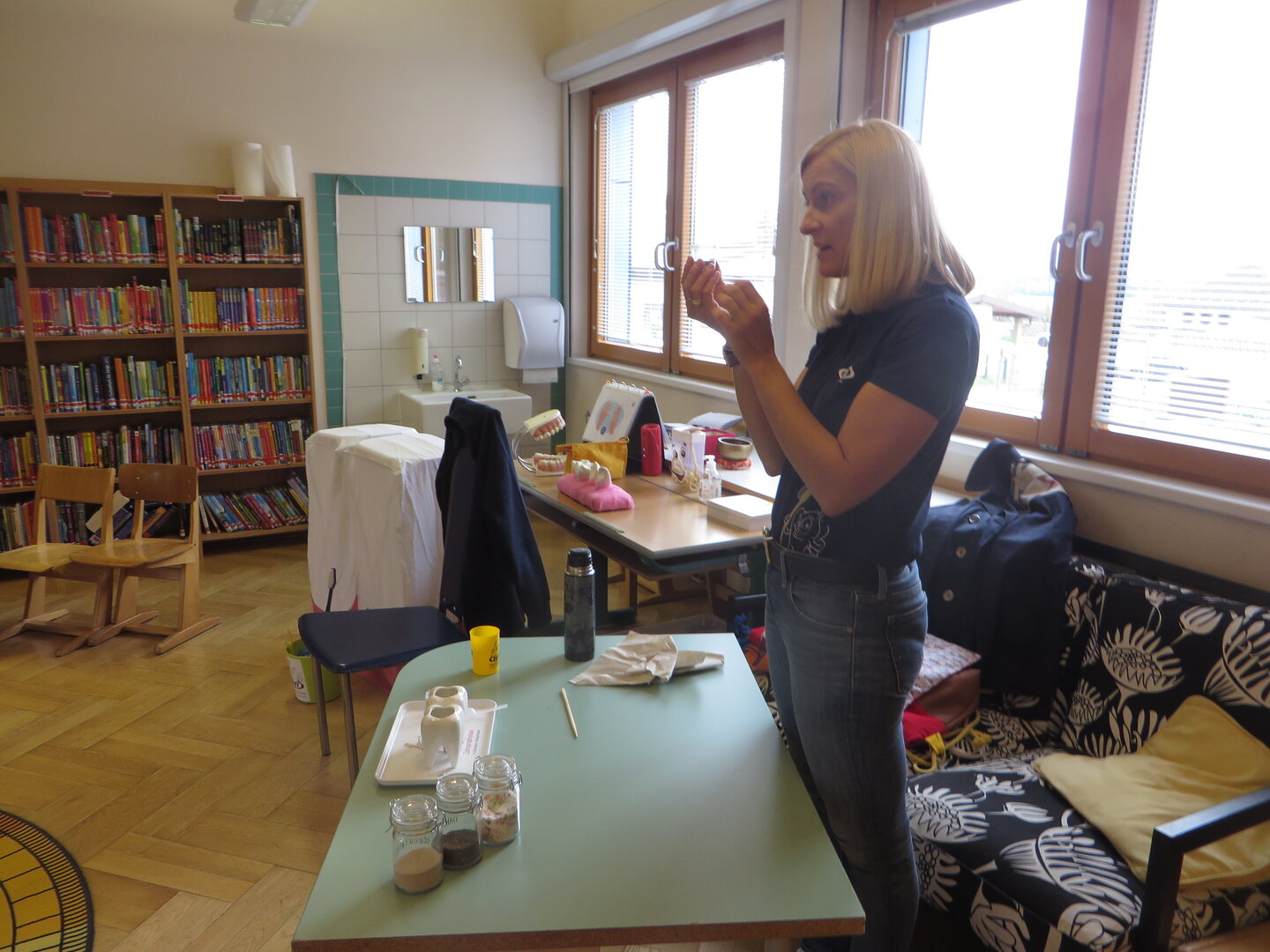 Beim heutigen Besuch der Zahnfee lernten wir über die Entstehung von Karies durch Milchsäure und wie man dies verhindern kann.
