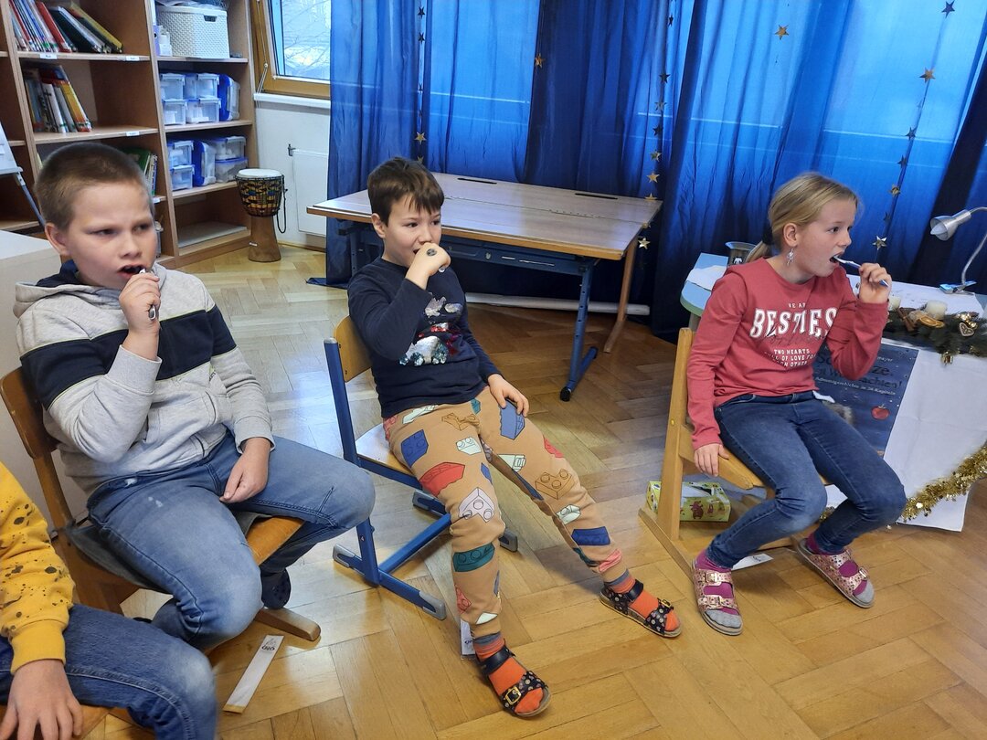 Durch die Zahnfee erfuhren wir an diesem interessanten Vormittag sehr viel über unsere Zahngesundheit. Mit tollen Beispielen und viel Anschauungsmaterial wurde das Wissen um die Wichtigkeit der Zahnpflege erweitert. Wie man richtig Zähne putzt durften wir üben und zuletzt gab es als Belohnung eine tolle Zahnbürste mit Zahncreme! - Danke liebe Zahnfee, wir freuen uns auf den nächsten Besuch!