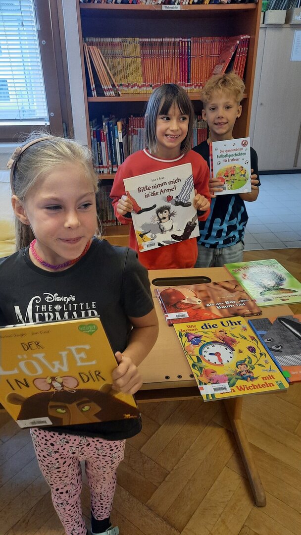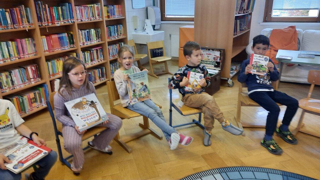 Was ist eine Bibliothek?, wo finde ich welche Bücher?, was könnte mich alles interessieren?, muss ich dafür bezahlen....? Diese und viele andere Fragen zum Thema Bücher und Lesen, konnten beim Besuch in unserer Schulbibliothek beantwortet werden. Mit einer tollen Einführung und einem lustigen Lied, hat Frau Gratl bei uns die Neugierde geweckt - also, nichts wie ganz schnell zu großartigen Lesern werden!