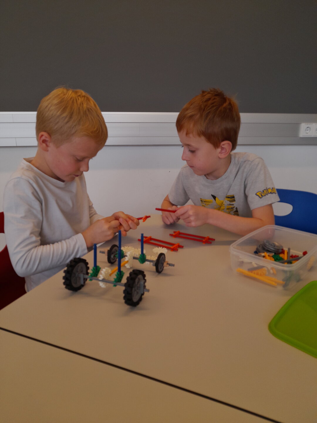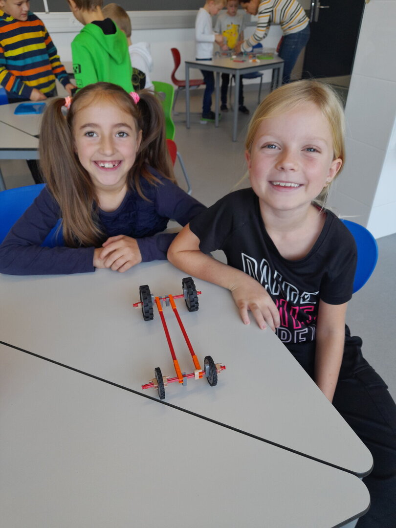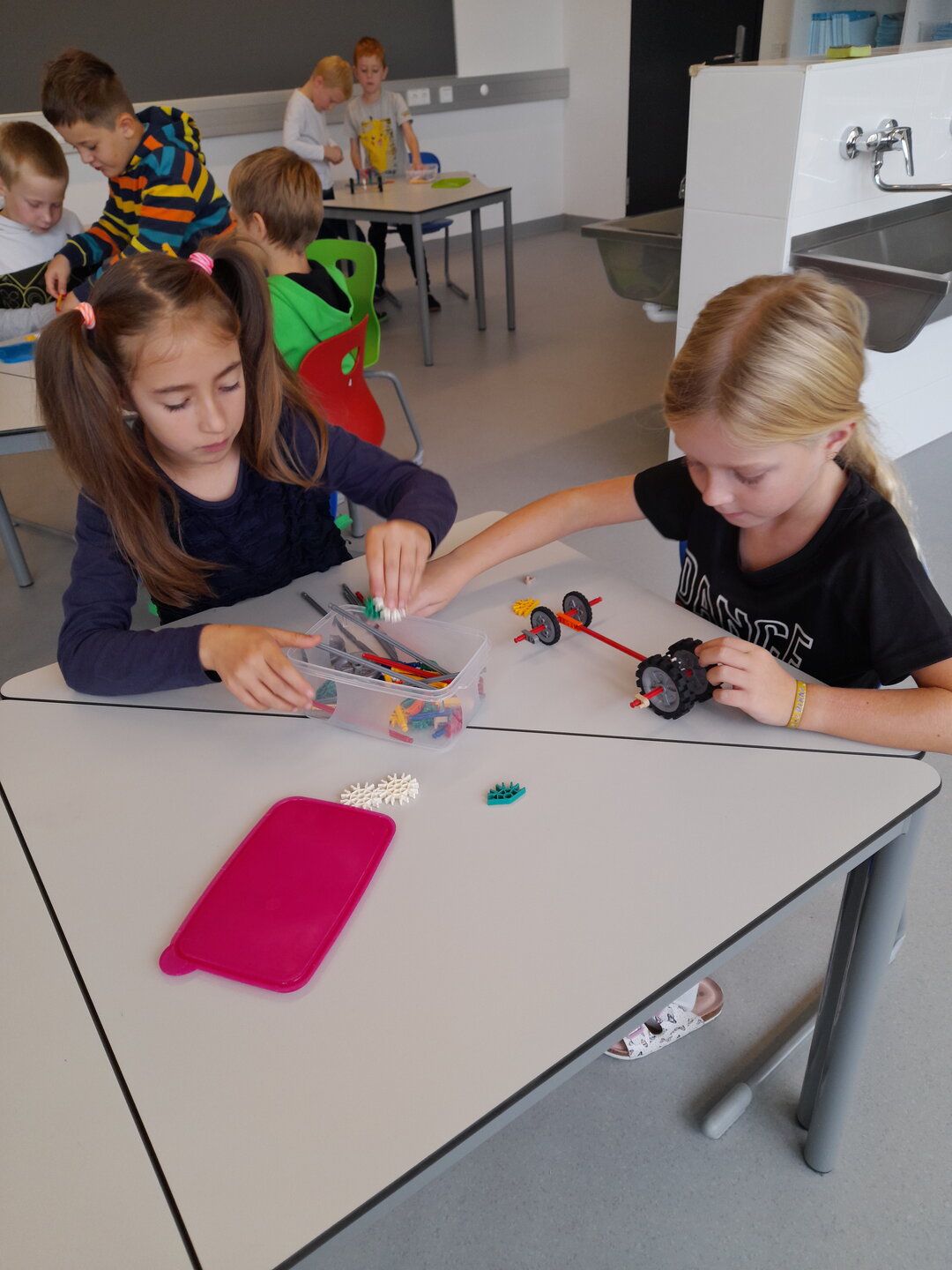 In Teams bauten die Kinder tolle Autos , die dann auf ihre Fahrtauglichkeit getestet wurden.