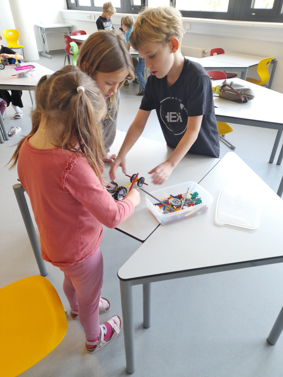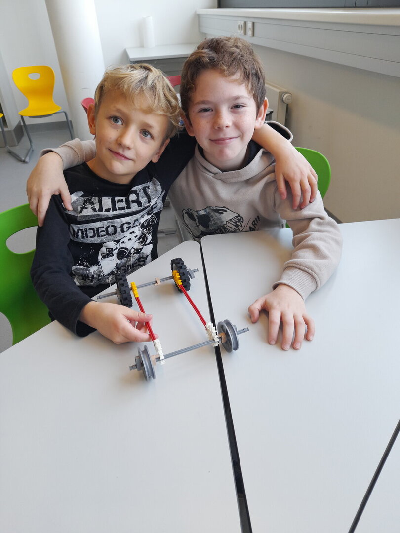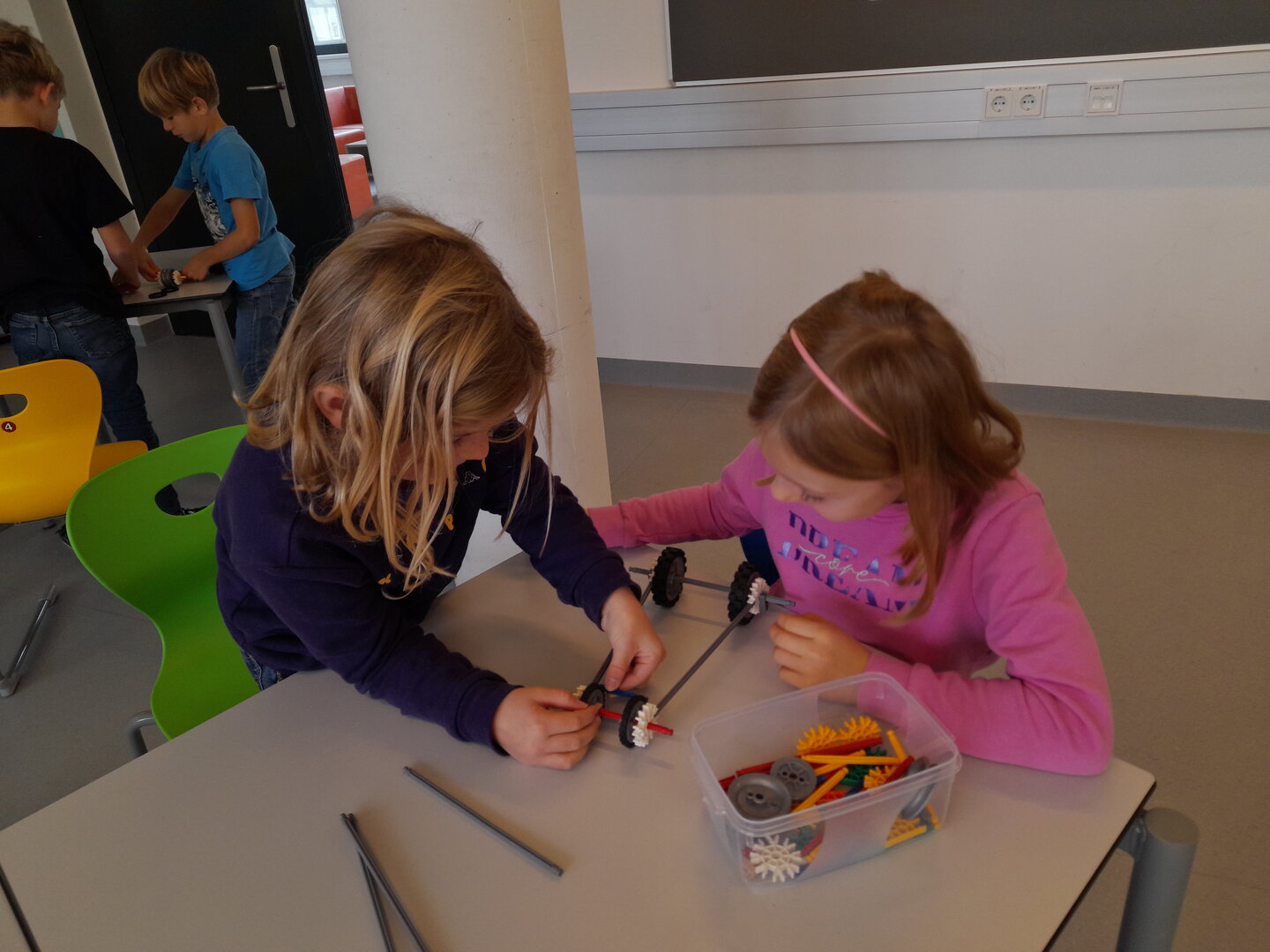 In Teams bauten die Kinder tolle Autos , die dann auf ihre Fahrtauglichkeit getestet wurden.