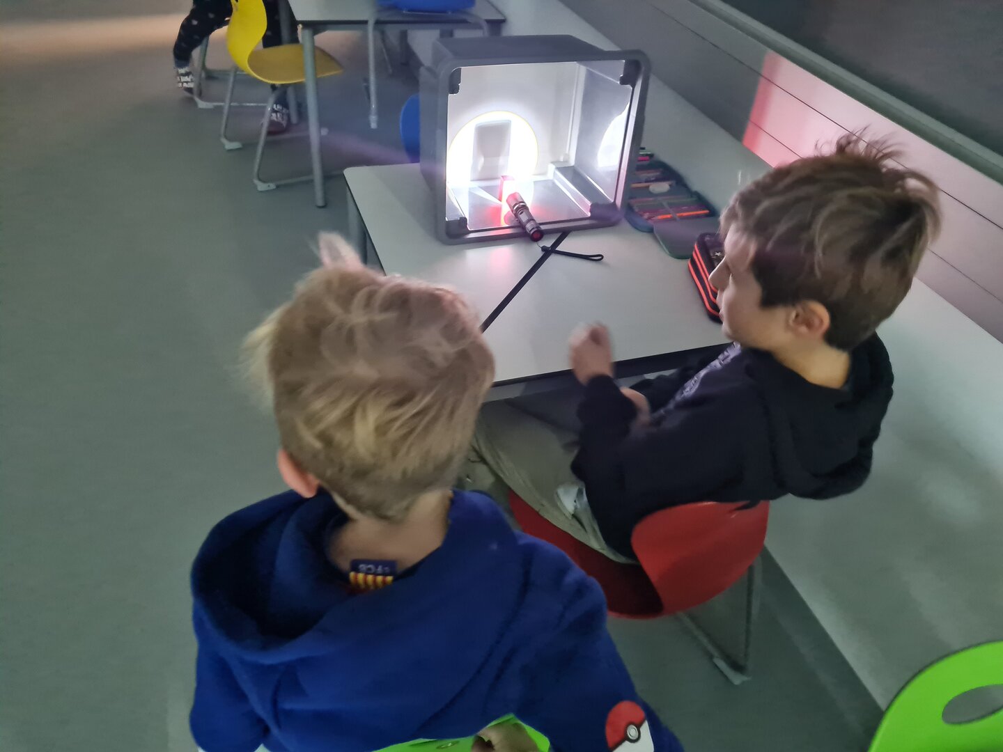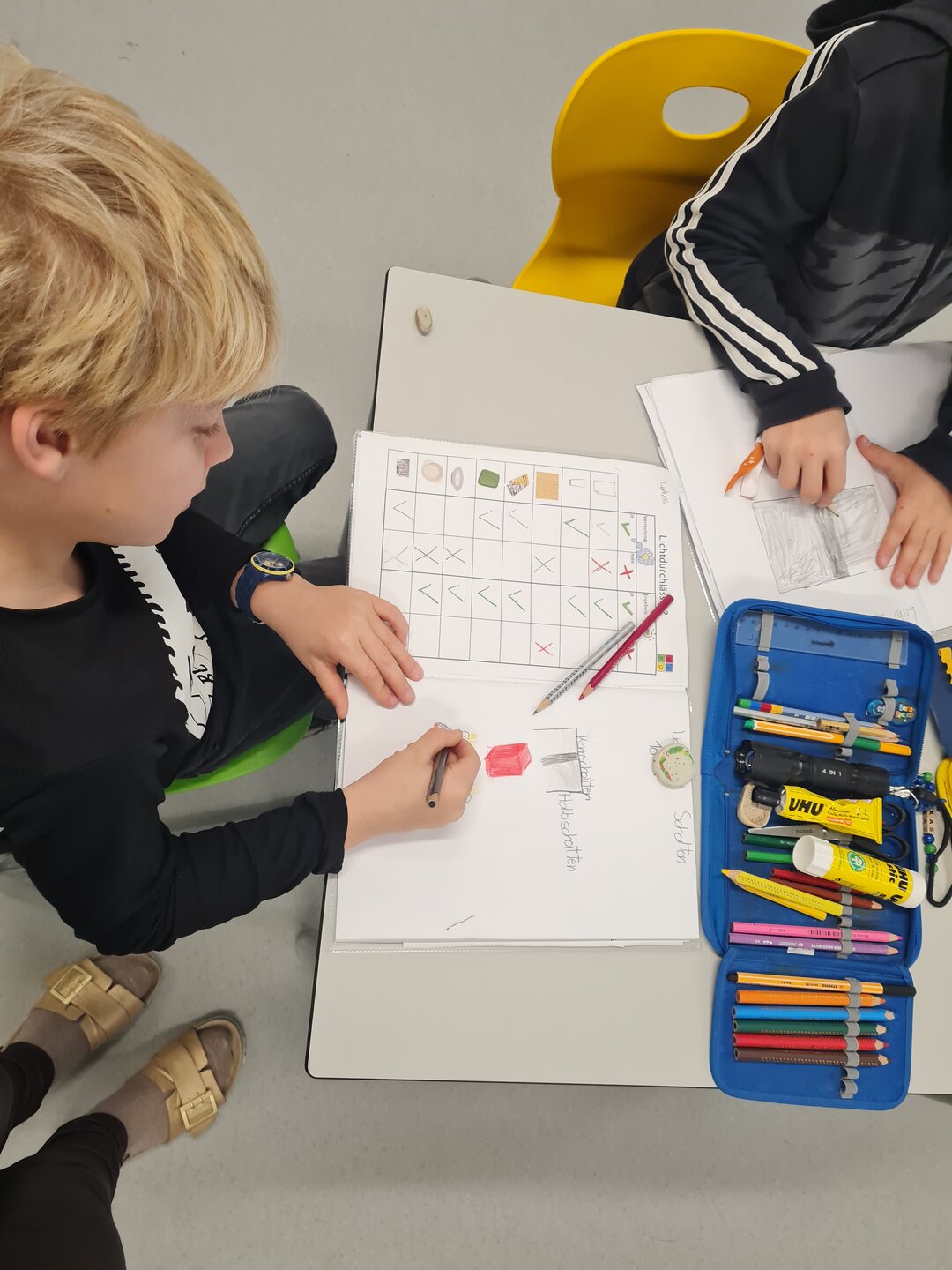 Mit voller Begeisterung experimentierten die Kinder der 2b Klasse im Bildungskompetenzzentrum Lakeside mit Licht und Schatten. Von Kern-, Halb- und bunten Schatten beeindruckt, haben die "Jungforscher" diese Erfahrungen danach im Experimentierheft festgehalten.