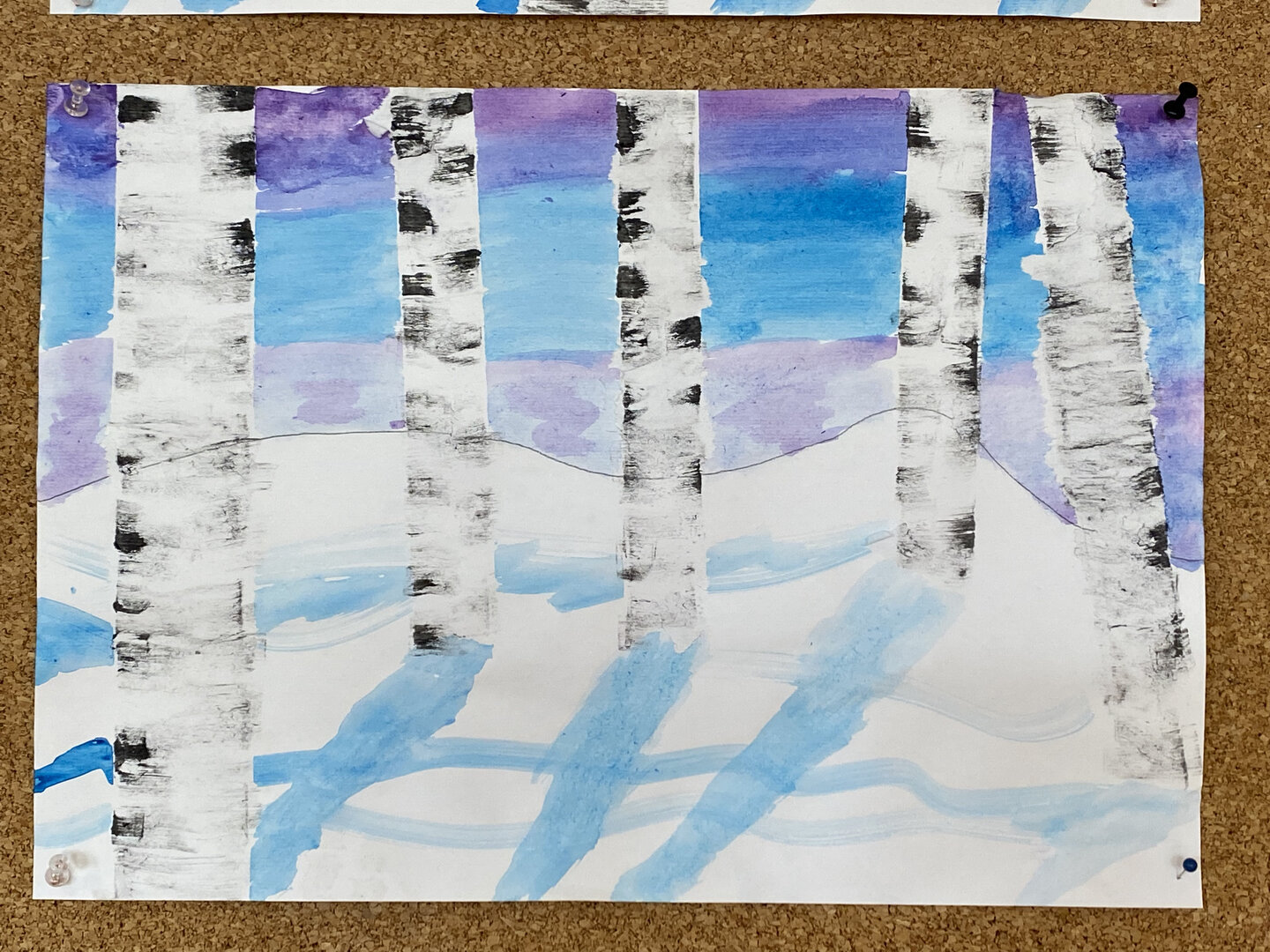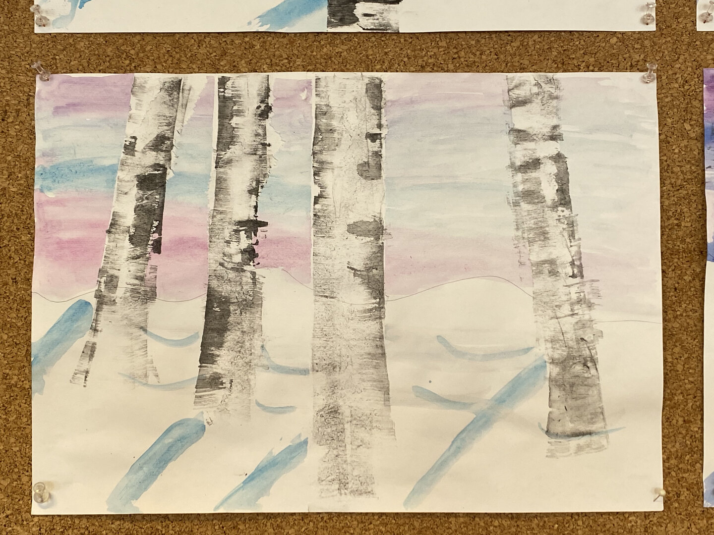 Die Kinder der 4a erstellten mit viel Begeisterung schöne Bilder mit Wasserfarben und Wischtechnik.