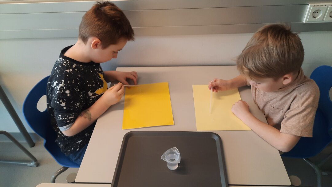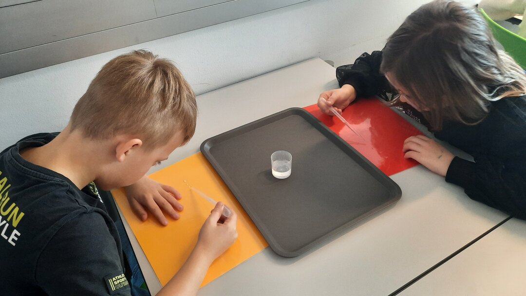 Spannend, was mit einem Wassertropfen, Luft und motorischem Geschick alles möglich wird. Zu guter Letzt gestalteten wir sogar ein Mandala mit gefärbtem Wasser. Wir freuen uns beim Nächsten Mal auf unsere Kunstwerke!