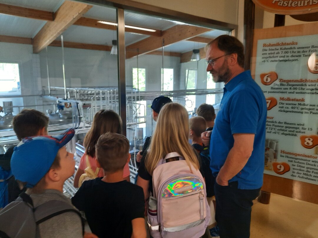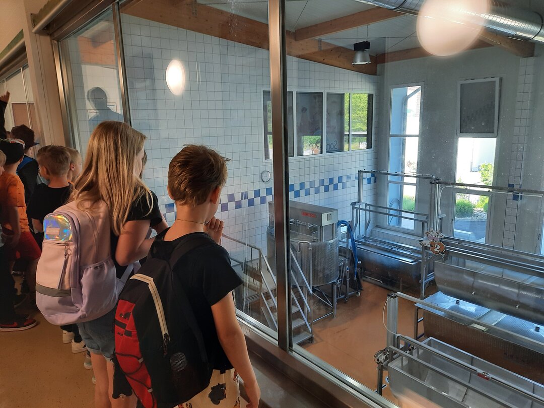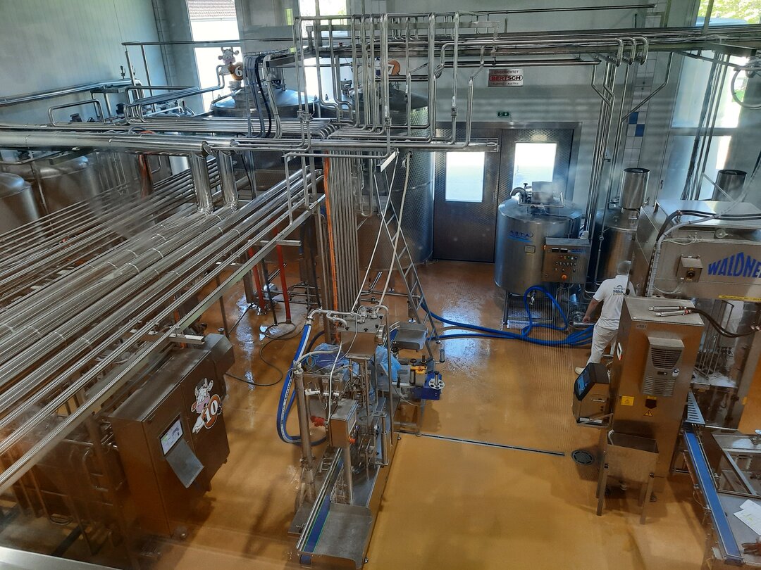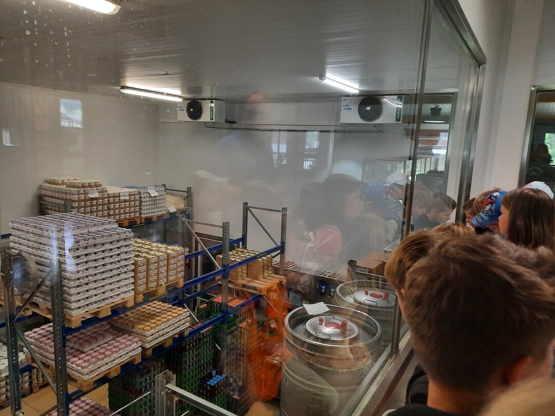 Nach einer herzlichen Begrüßung führte uns Michael durch die Molkerei und erklärte uns, was genau in jedem der interessanten Räume geschieht. Wie der Käse und das Joghurt etc. hergestellt werden und wie viele Arbeitsschritte dafür nötig sind, hat uns sehr zum Staunen gebracht.