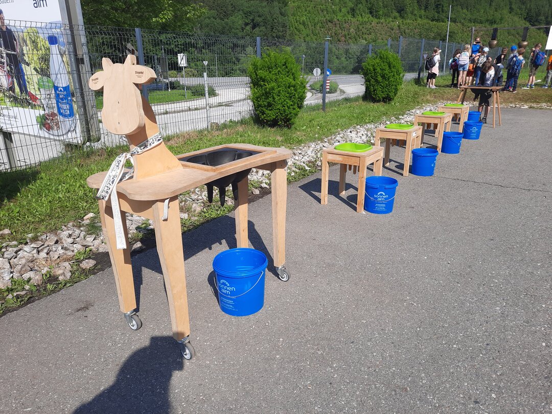 Im Anschluss an die Besichtigung, waren im Freien lustige Spiele für uns vorbereitet wie z.B. das Melken mit Attrappen und "Bauerngolf". Das war wirklich lustig, aber gar nicht so einfach.