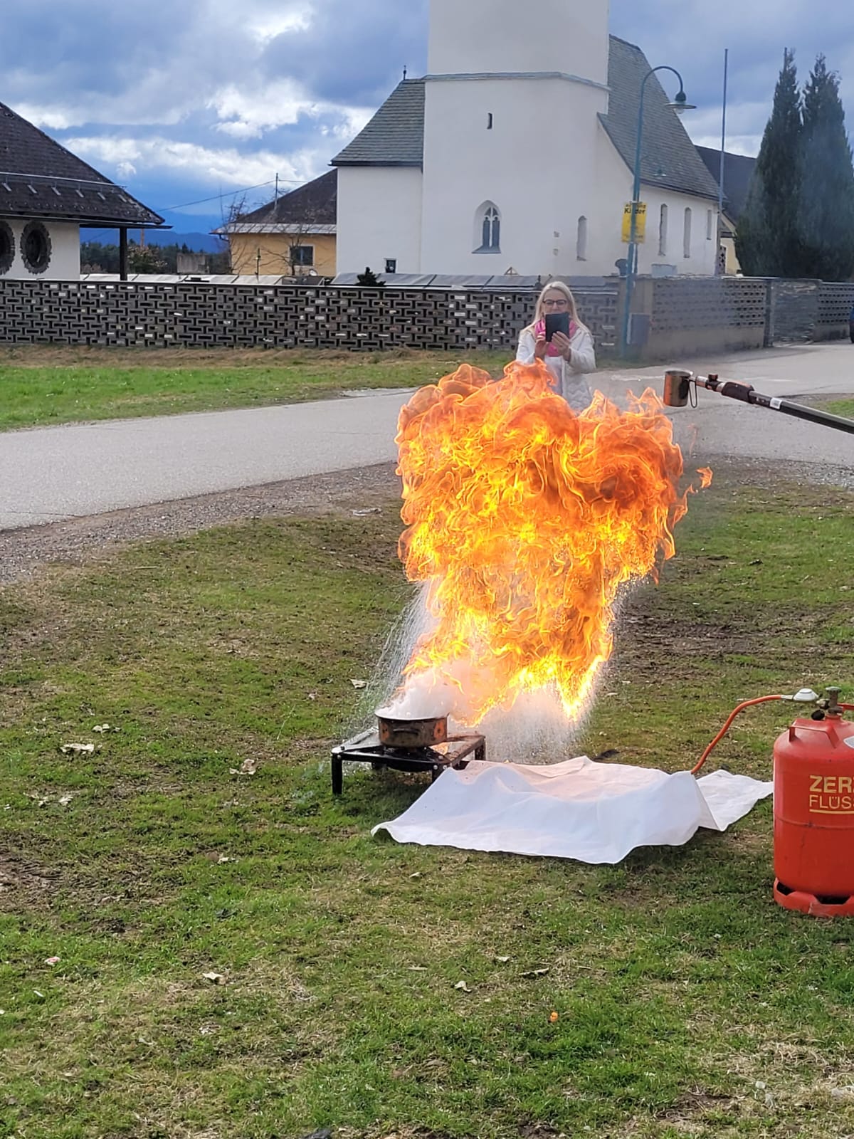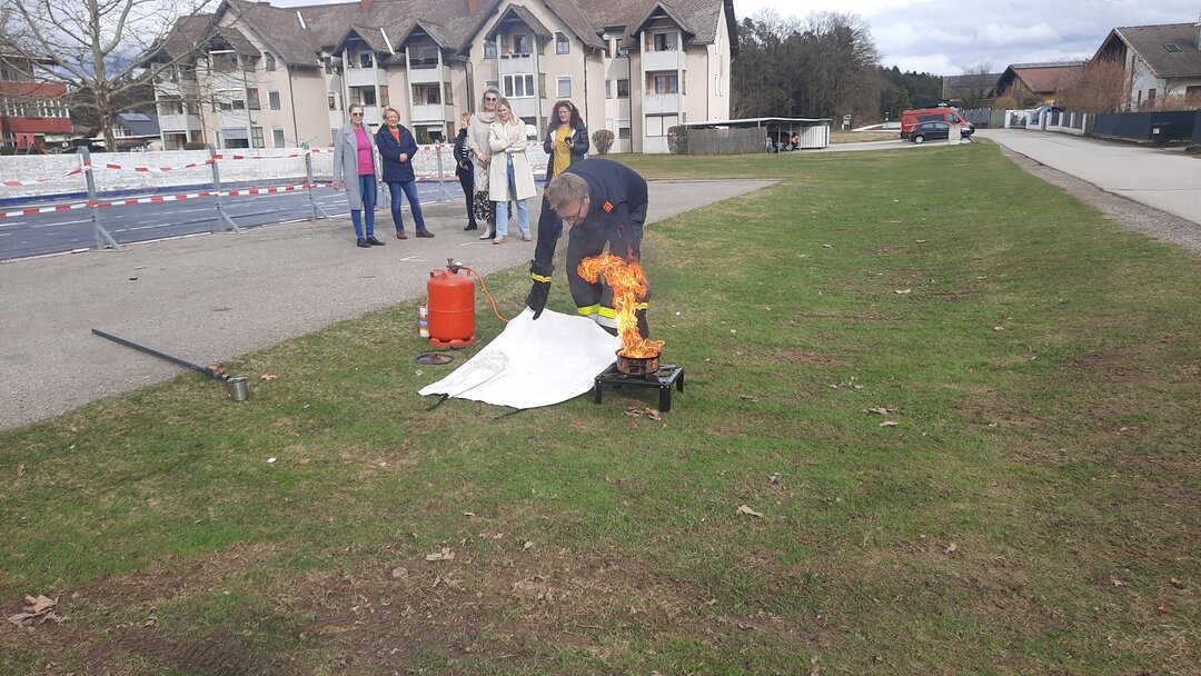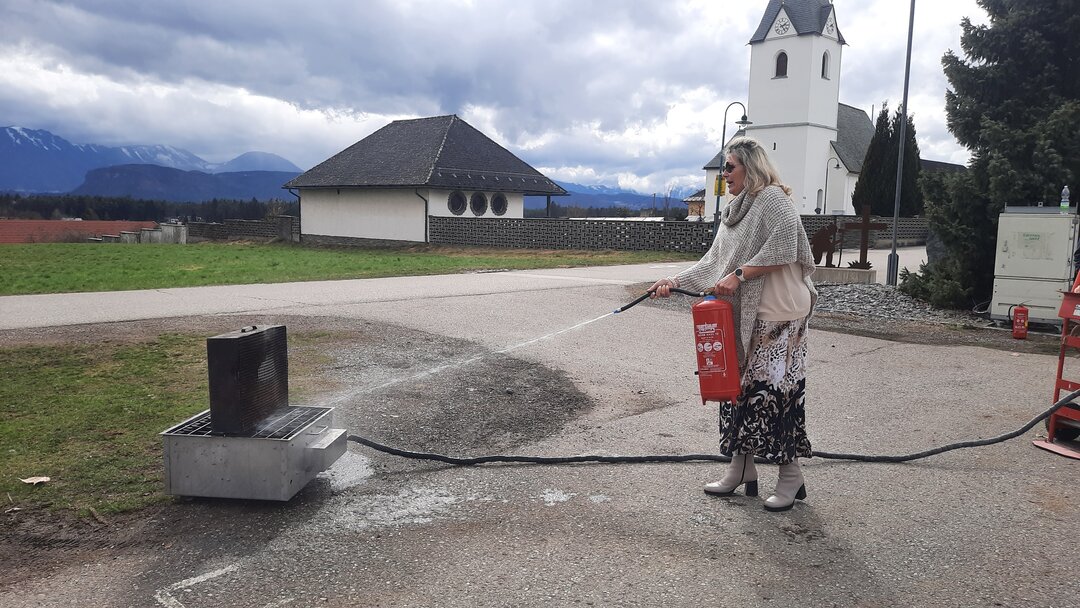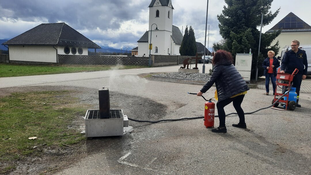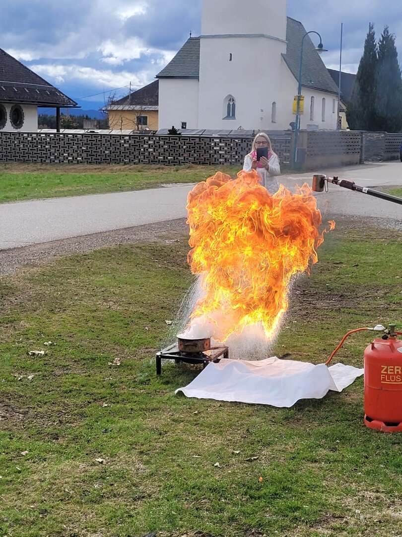 Heute durfte sich das Lehrerinnenteam der VS-Poggersdorf als Feuerwehrdamen versuchen. Bei einer wichtigen und interessanten Schulung durch den FF Kommandanten Markus Schwagerle, wurden die unterschiedlichsten Arten von Feuerlöschern sowie ihre Wirkungsweise und Anwendbarkeit kennen gelernt und danach auch erprobt. Besonders eindrucksvoll waren die Löschübungen, vor allem beim Brand durch Öl. Kaum vorstellbar, was auch bei unsachgemäßem Löschen geschehen könnte.