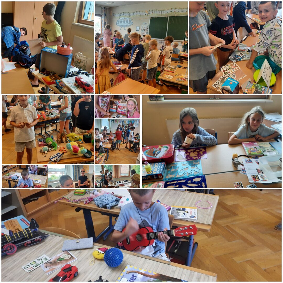 Beim Tauschen, Tandeln und Handeln hatten unsere Schüler heute, wie jedes Jahr, große Feude und richtigen Spaß. So manches Kind trennte sich von netten Spielsachen, Büchern..., aber auch feine Kuchen und Muffins standen zum Angebot.