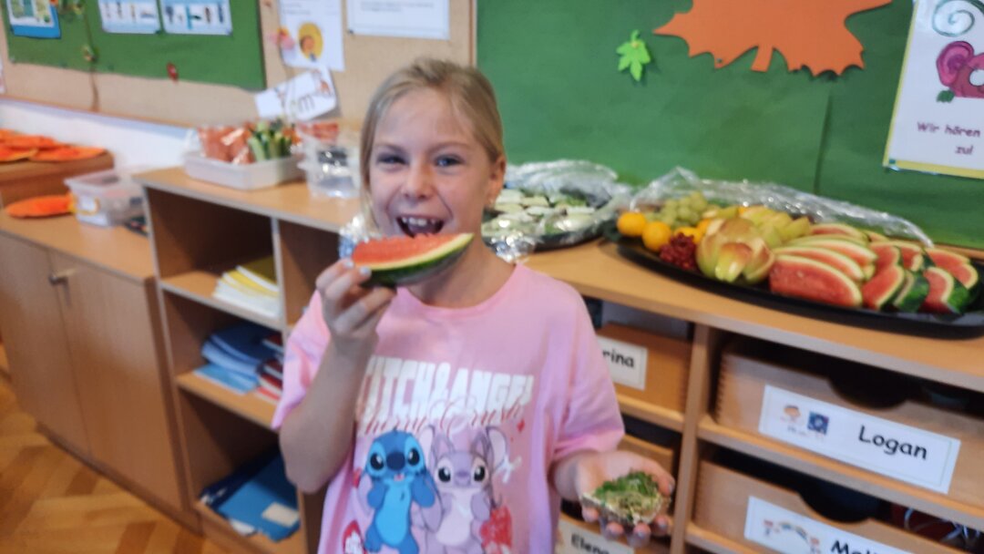 Heuer ist die "gesunde Schule" ein wichtiges Thema für uns alle. In diesem Sinne wurde gemeinsam mit den Eltern beschlossen, dass gesunde Ernährung in unsere Klasse zu einem Schwerpunkt wird. Gesunde Jause für alle, wird von den Eltern für die Kinder zur Verfügung gestellt, aber auch gemeinsam werden wir viel zu diesem Thema kennen lernen und ausprobieren.