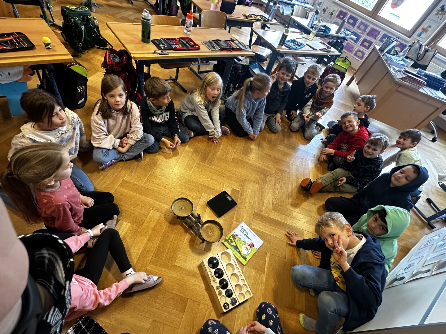 Die 1b lernte diese Woche die Gewichtsmaße g, dag und kg kennen. Dazu wurde das Buch "Gramm, Kilogramm - du bist dran!" als Einstieg vorgelesen. Die Kinder konnten dann durch die Gewichte auch genau herausfinden, wie schwer die Charaktere im Buch waren, diese in der Hand vergleichen und auf der Waage abwiegen. Wir hatten viel Freude daran!
