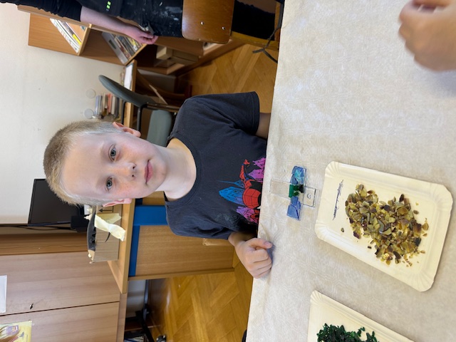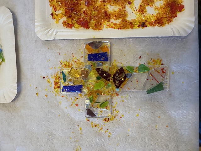 Für die Erstkommunion gestalteten die Kinder der 2a und 2b Glaskreuze.