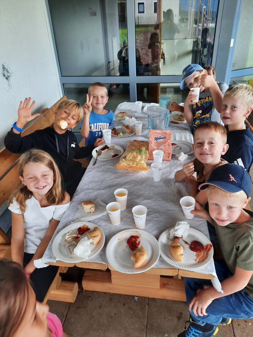 Glücklicherweise konnten wir endlich das abgesagte Grillfest vom Sommer im neuen Schuljahr nachholen. Dank der Unterstützung der Eltern der 2a und 2b Klasse, wurde im Schulhof fein gespeist. Vom Würstchen bis zum Kuchen konnten sich die Kinder alles schmecken lassen. Das Wetter hat ausgehalten und alle erfreuten sich bei Spiel und Spaß! Ein wunderschöner Einstieg ins Wochenende!