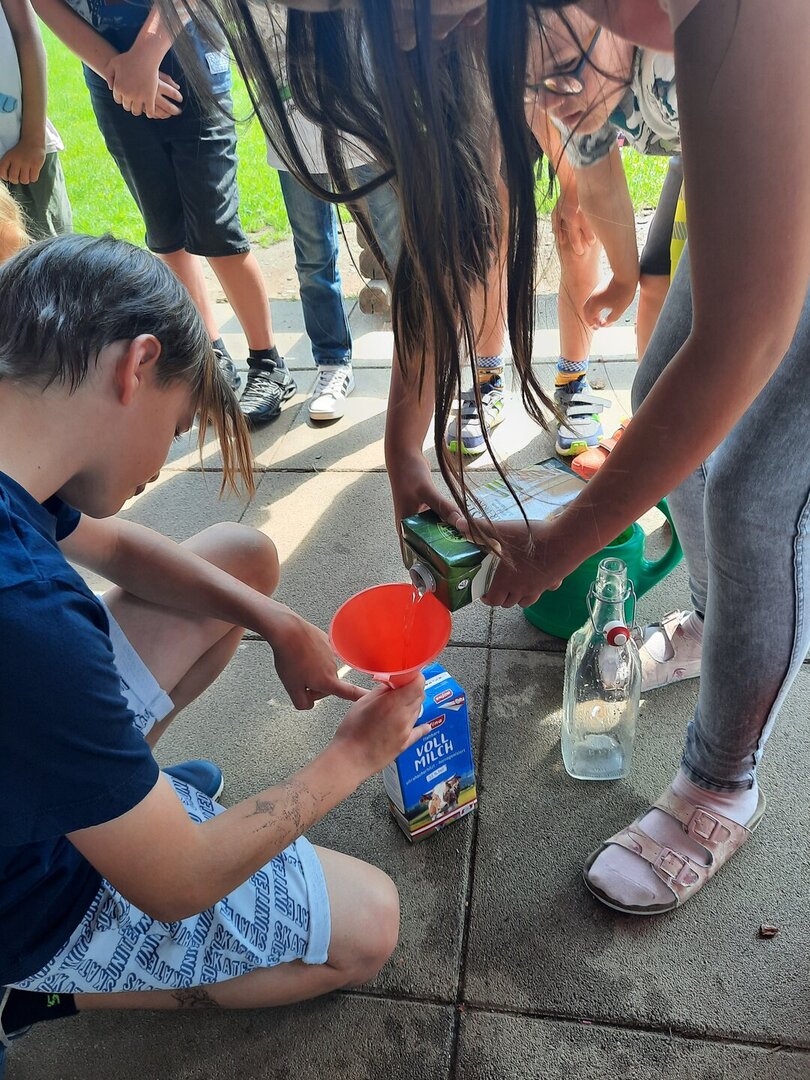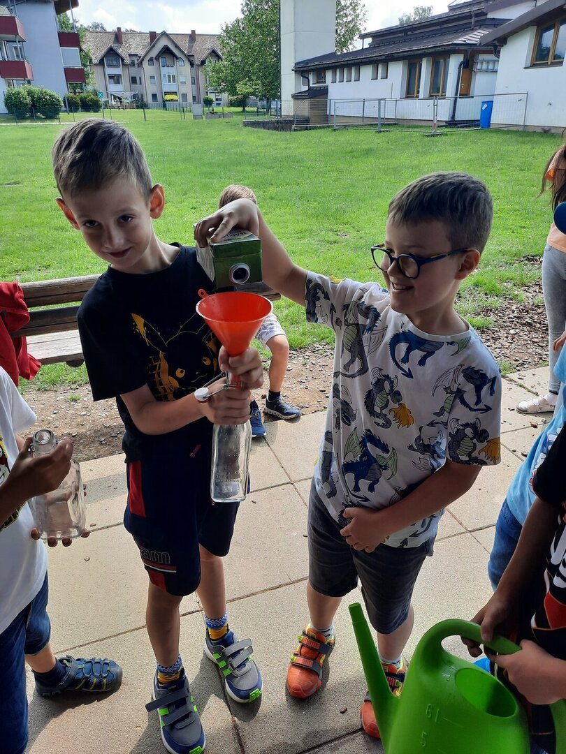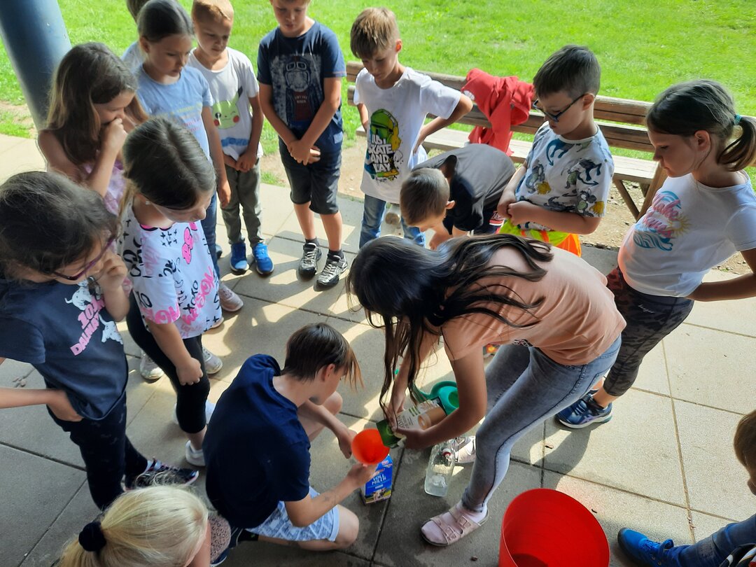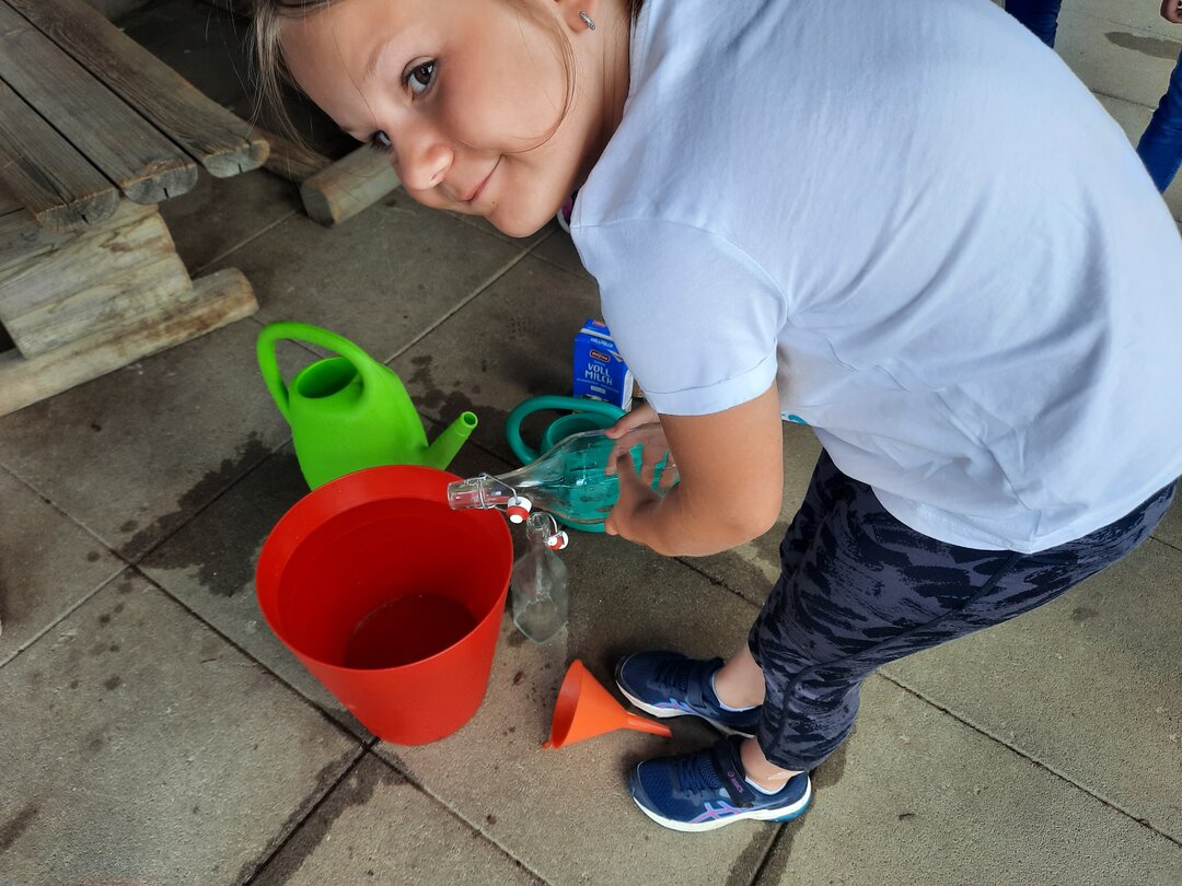Heute erforschten wir die Maßeinheit Liter im Freien. Was und wie viel ist ein Liter?, wie viel Flüssigkeit passt wo hinein? etc.... Viele Fragen konnten wir durch schätzen und vergleichen bzw. messen letztlich beantworten. Das war nicht so einfach, aber sehr spannend - Mathematik erforschen und handelnd erfahren war "cool" und wir haben uns ganz viel gemerkt!