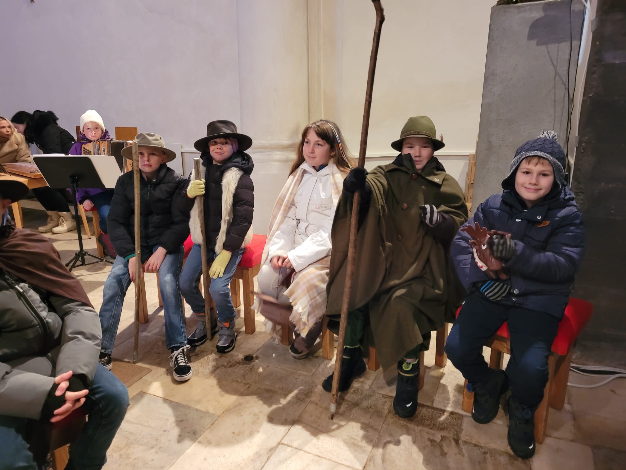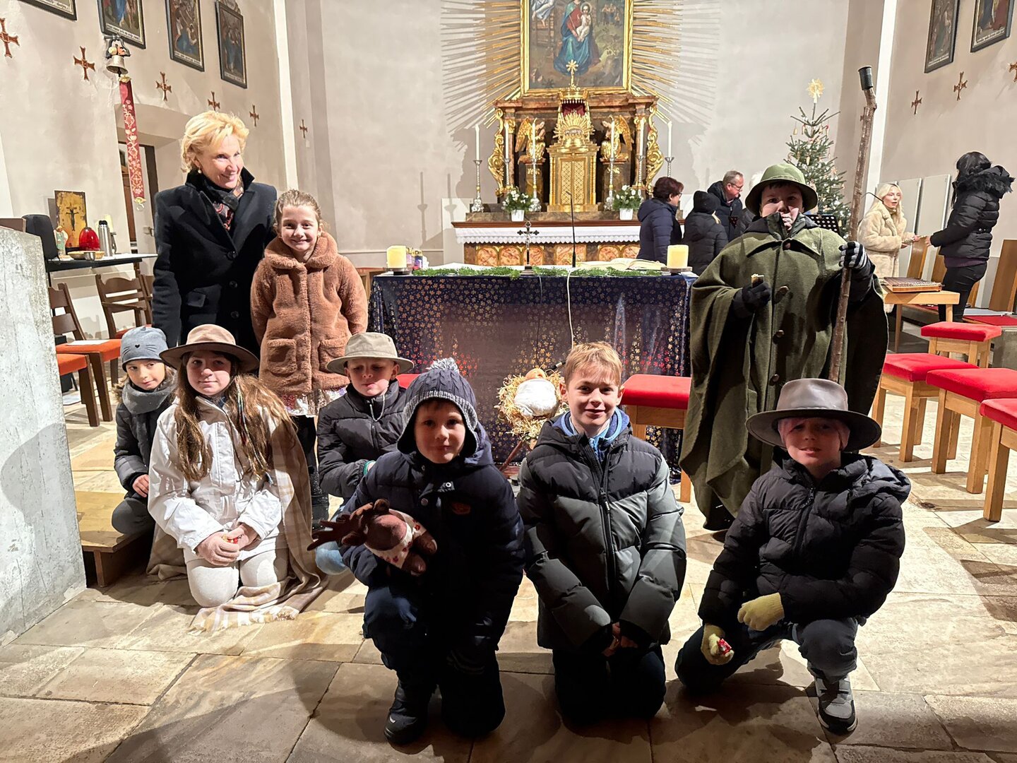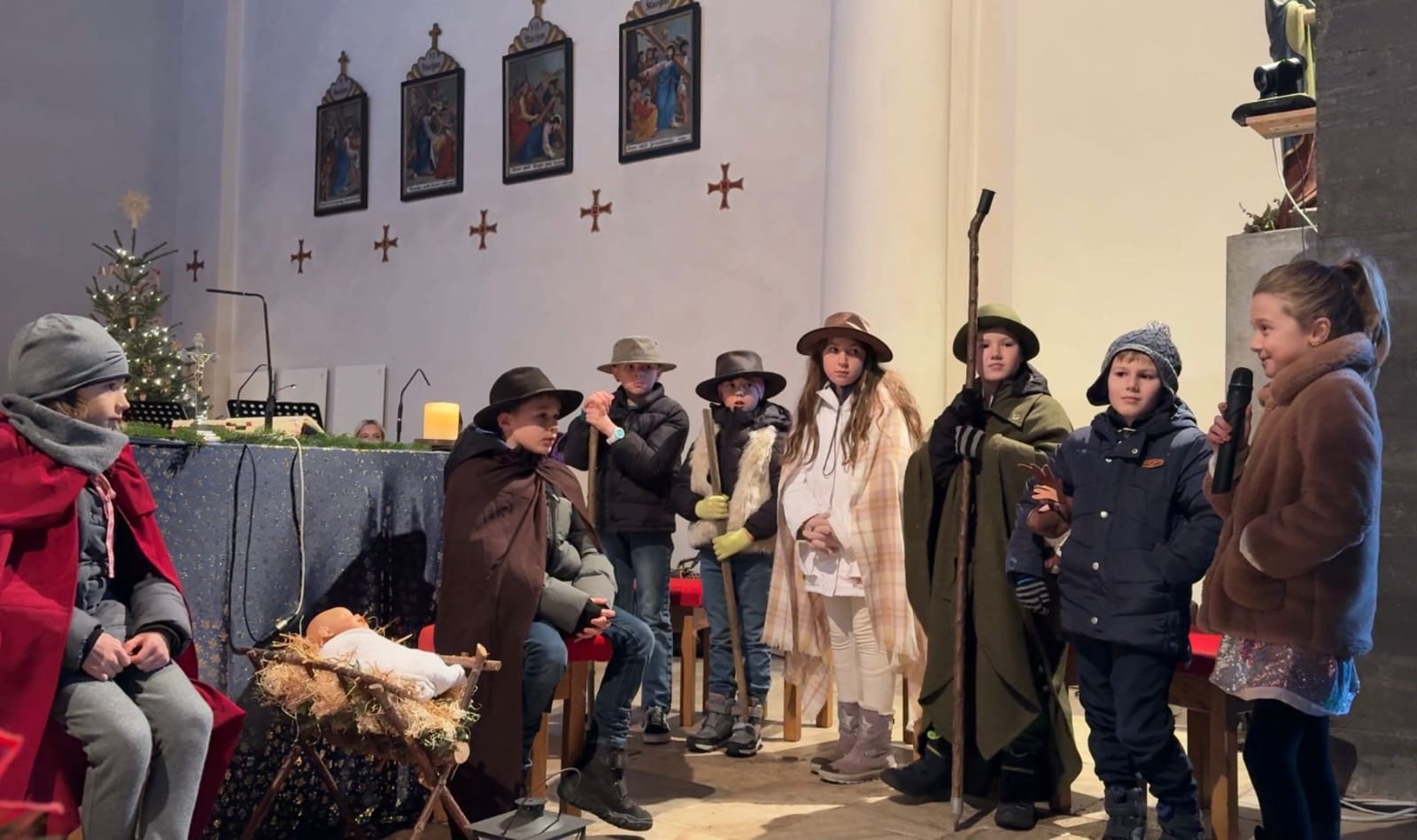 Heuer gestalteten wieder 9 Schüler der VS Poggersdorf mit einem Hirtenspiel die Kinderweihnachtsmesse am 24.12. in Dolina.