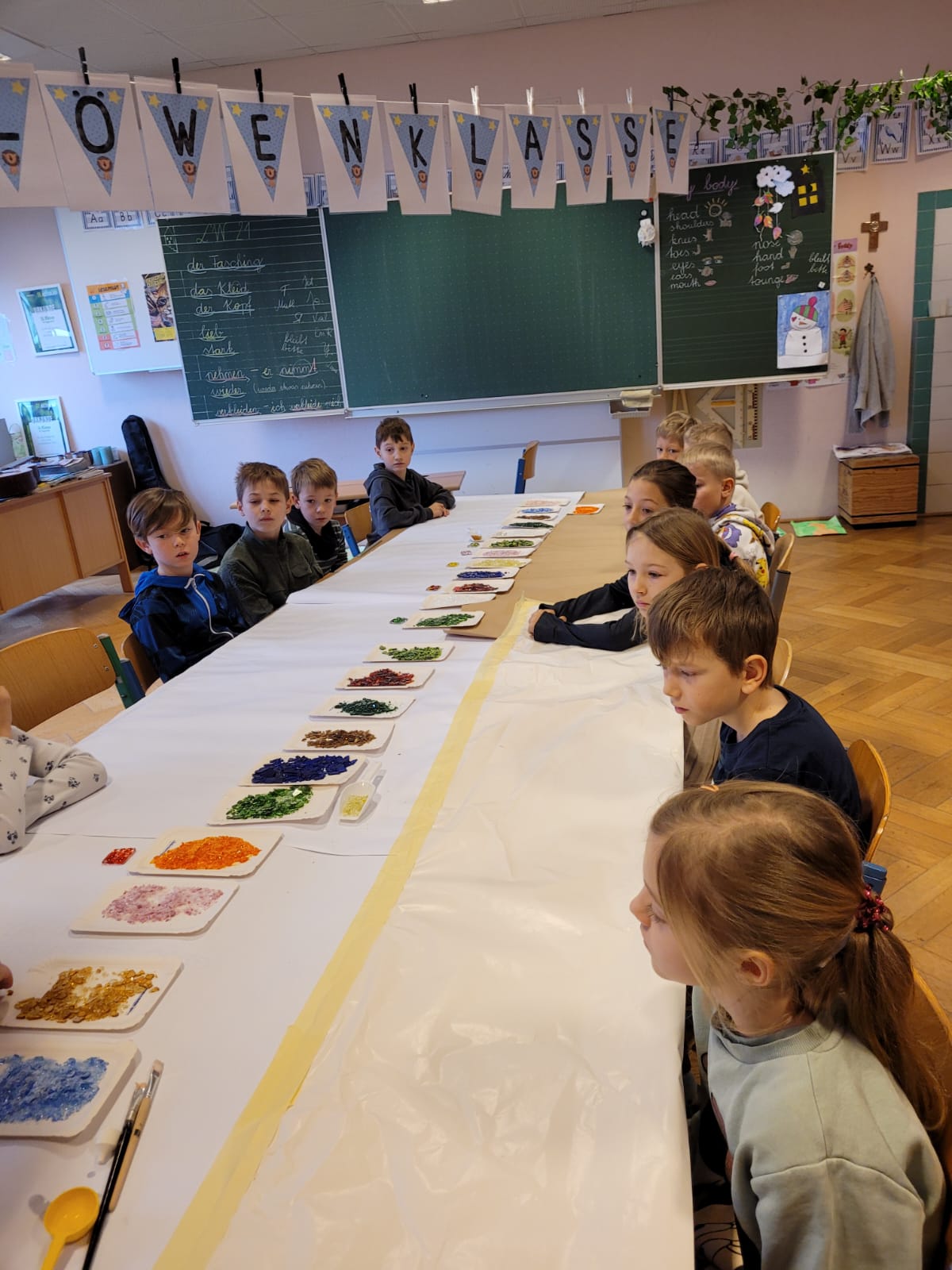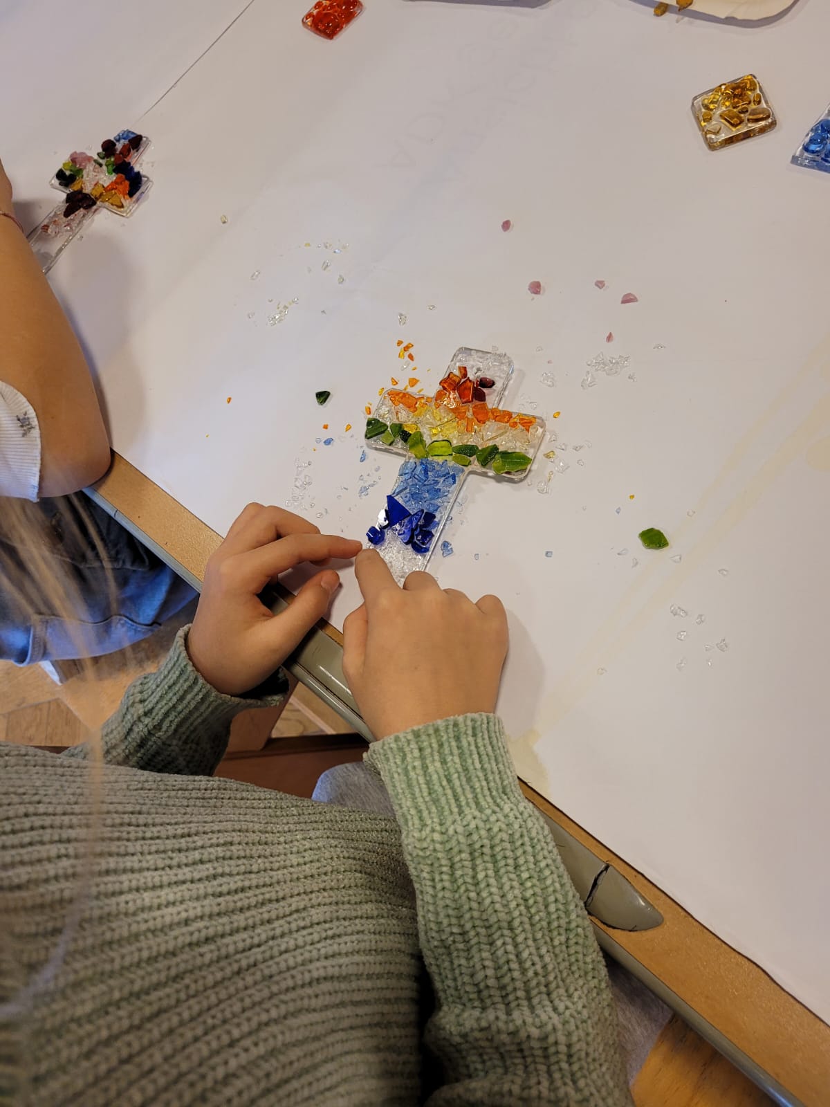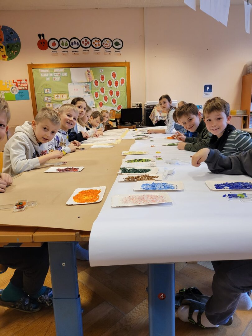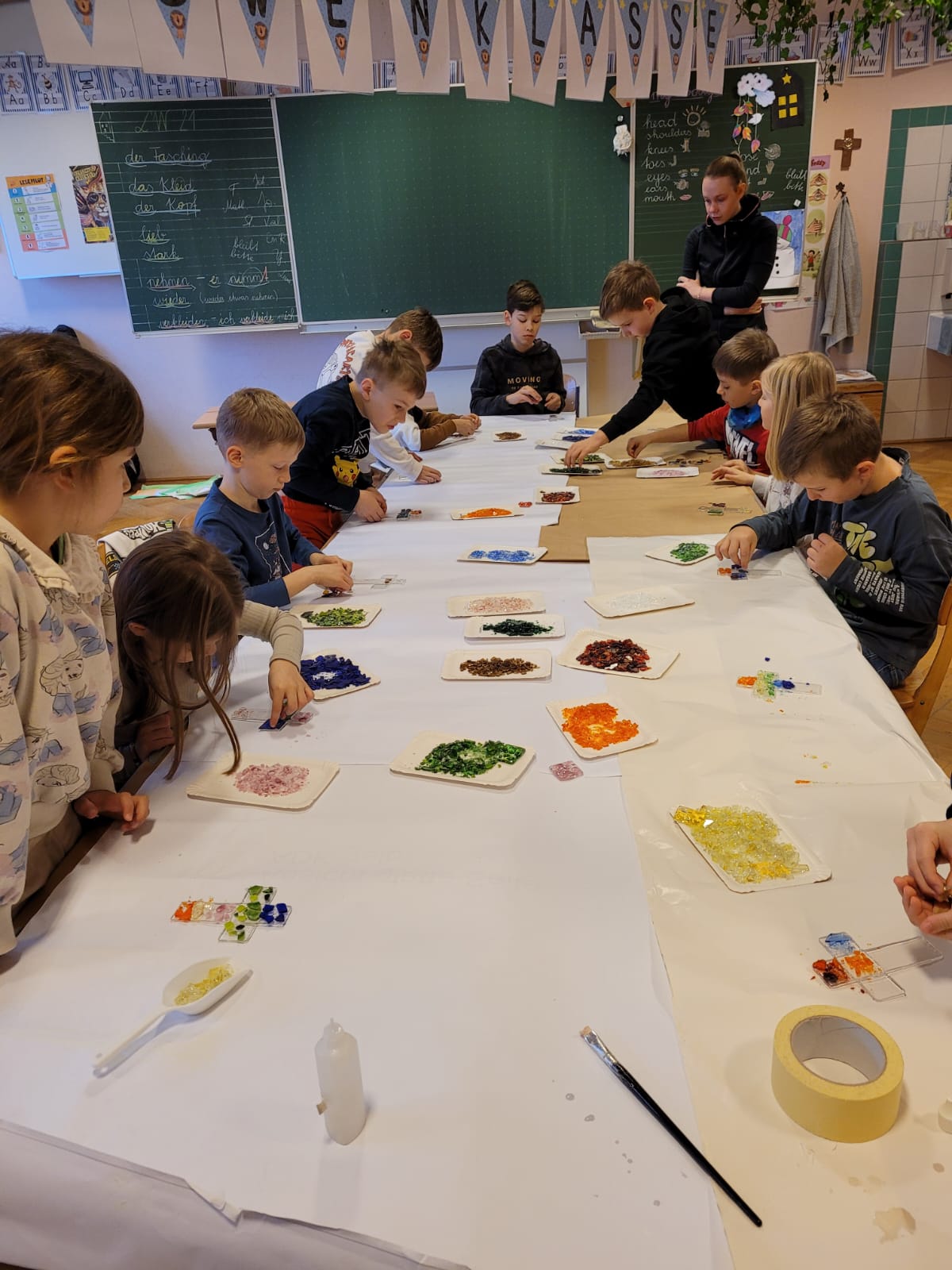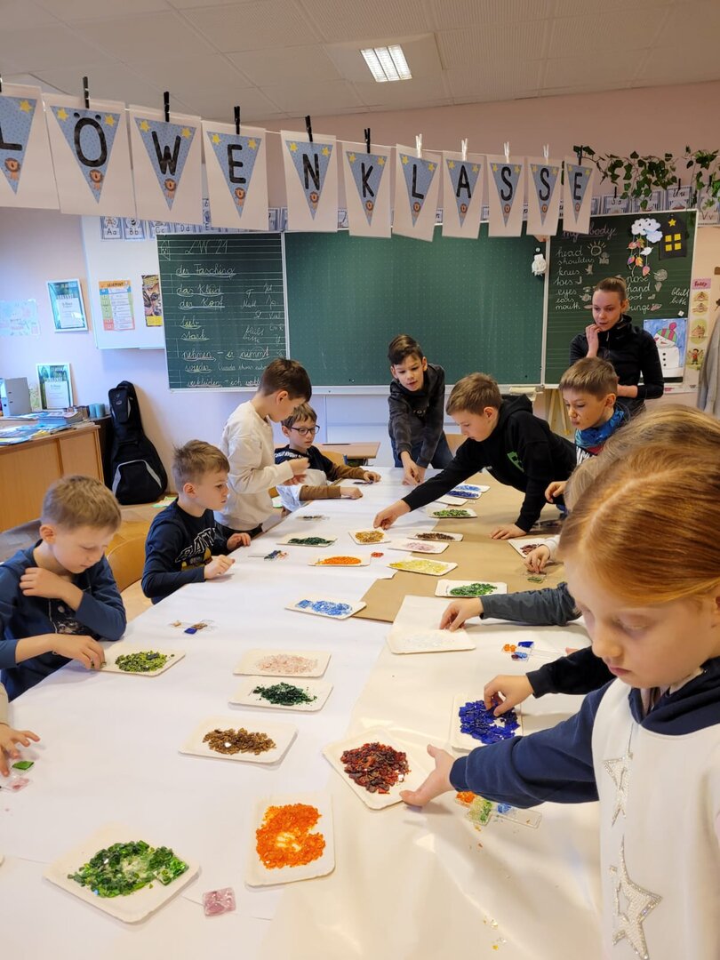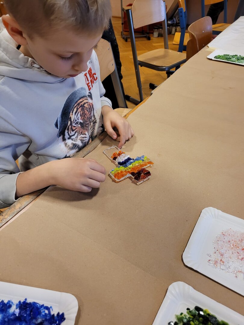 Die 2a und die 2b konnten mit Hilfe der Firma Kempfer Kreuze aus Glas gestalten.