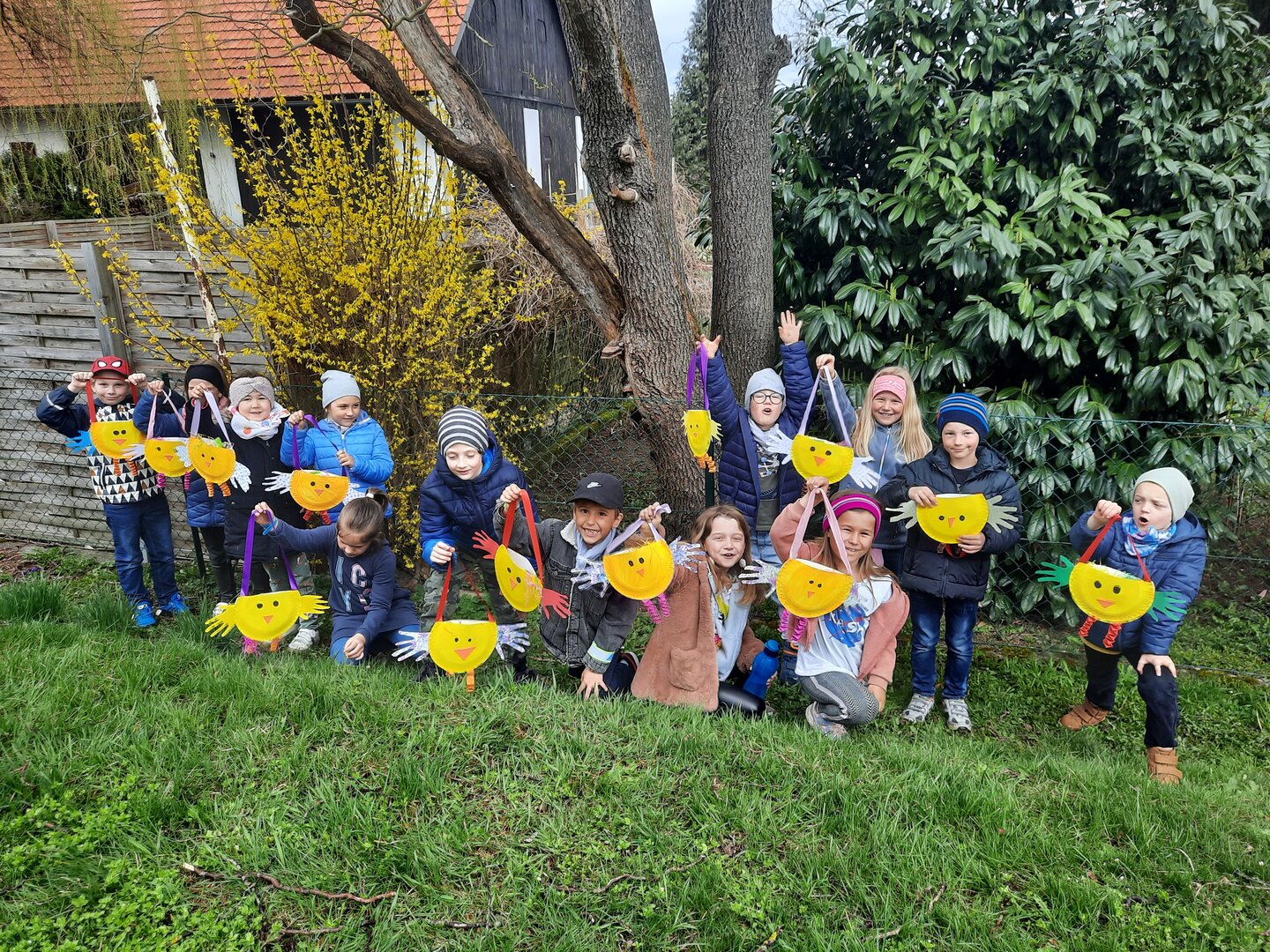 Im Werkunterricht wurden zu Ostern lustige Küken gebastelt. Wer diese wohl im Schulgarten versteckt hat - das war eine spannende Frage mit vielen interessanten Antworten!