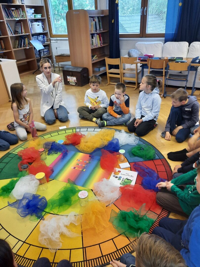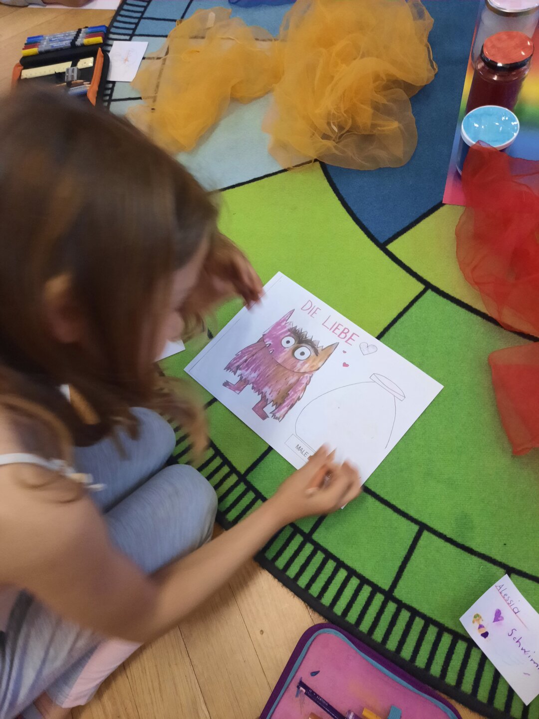 Gefühle nennen, wahrnehmen, erkennen, aussprechen und mit ihnen richtig umgehen, das haben wir heute bearbeitet. Theresa zeigte uns die bunte, oft ungeordnete Welt der Gefühle.