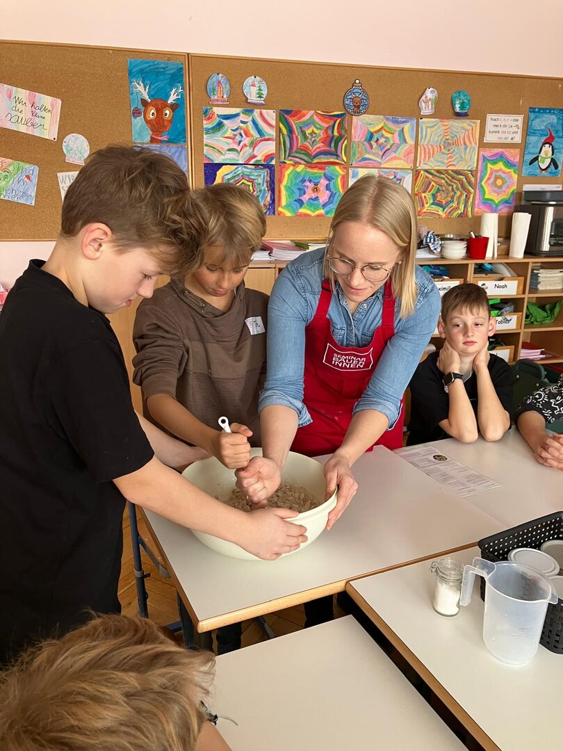 Im praktischen Teil werden gemeinsam Weckerl, Aufstriche und Desserts aus heimischen Lebensmitteln zubereitet.