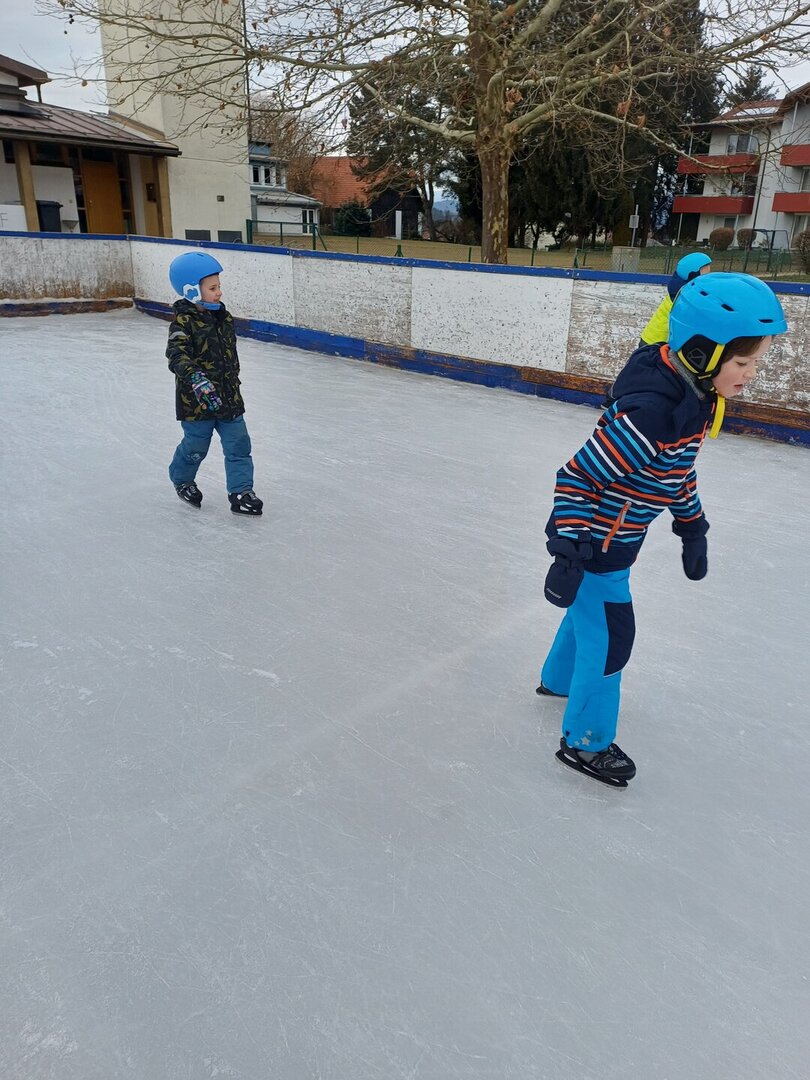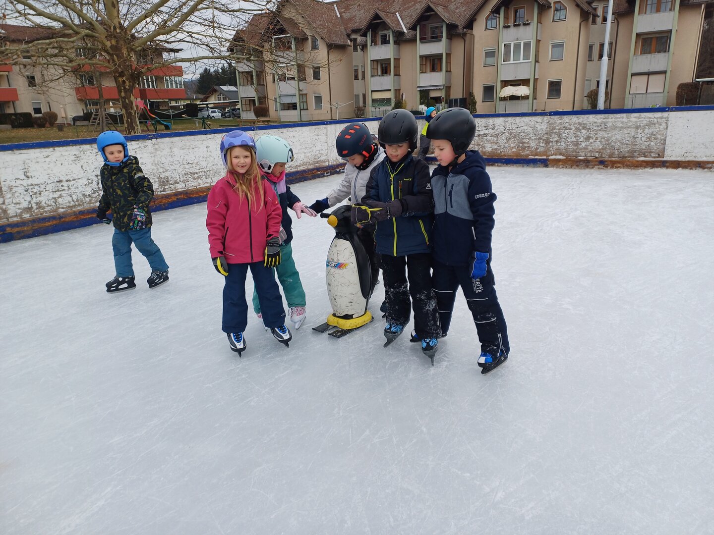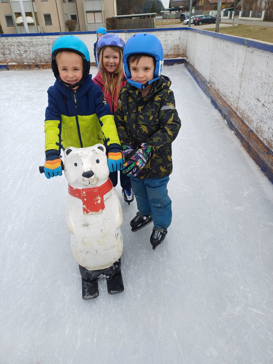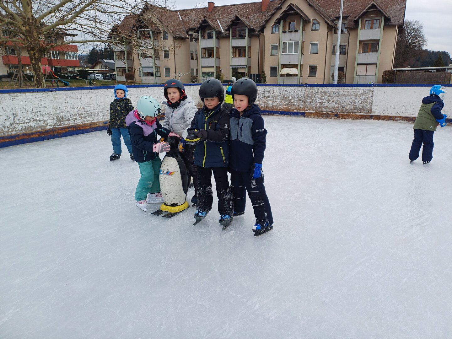 Mit viel Spaß verbringt die 1a Klasse gerne ihre Turnstunden am Eislaufplatz.
