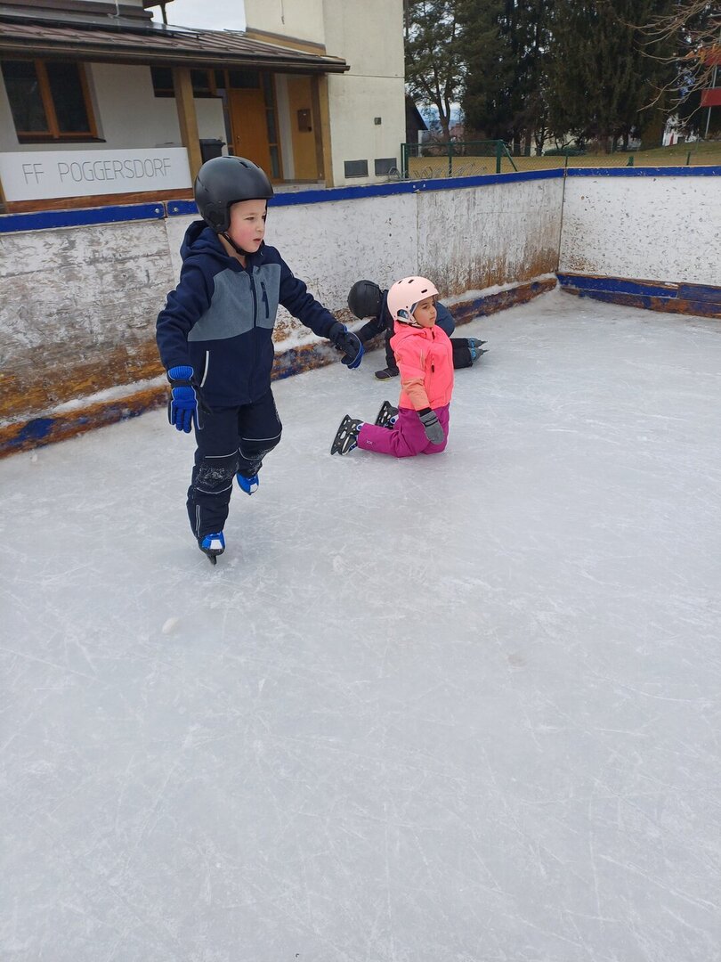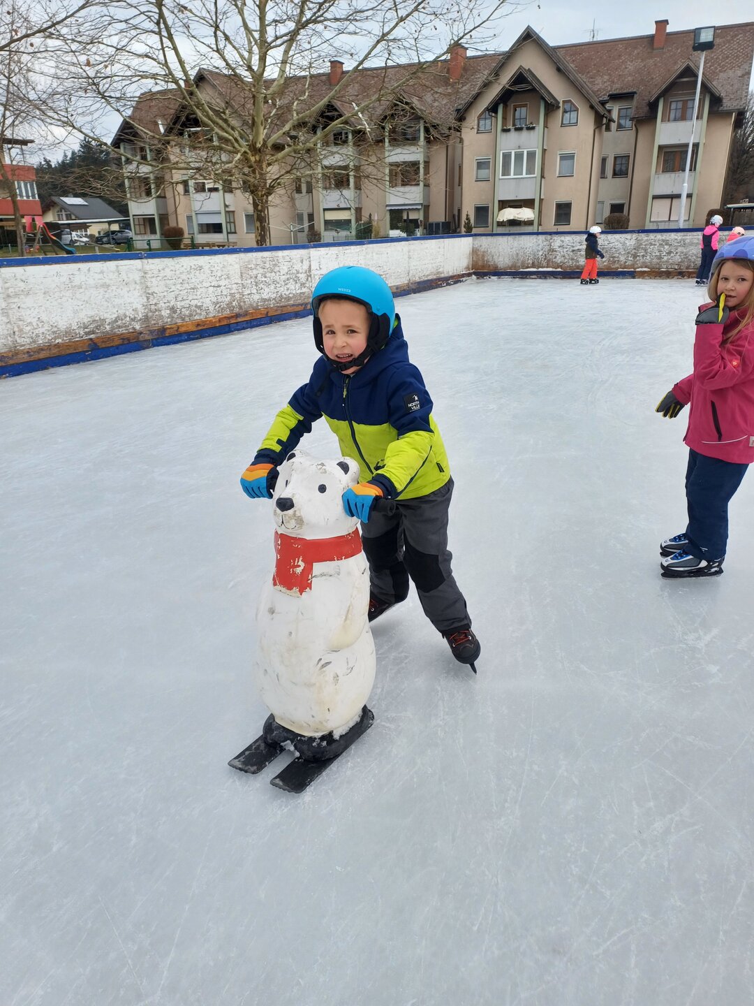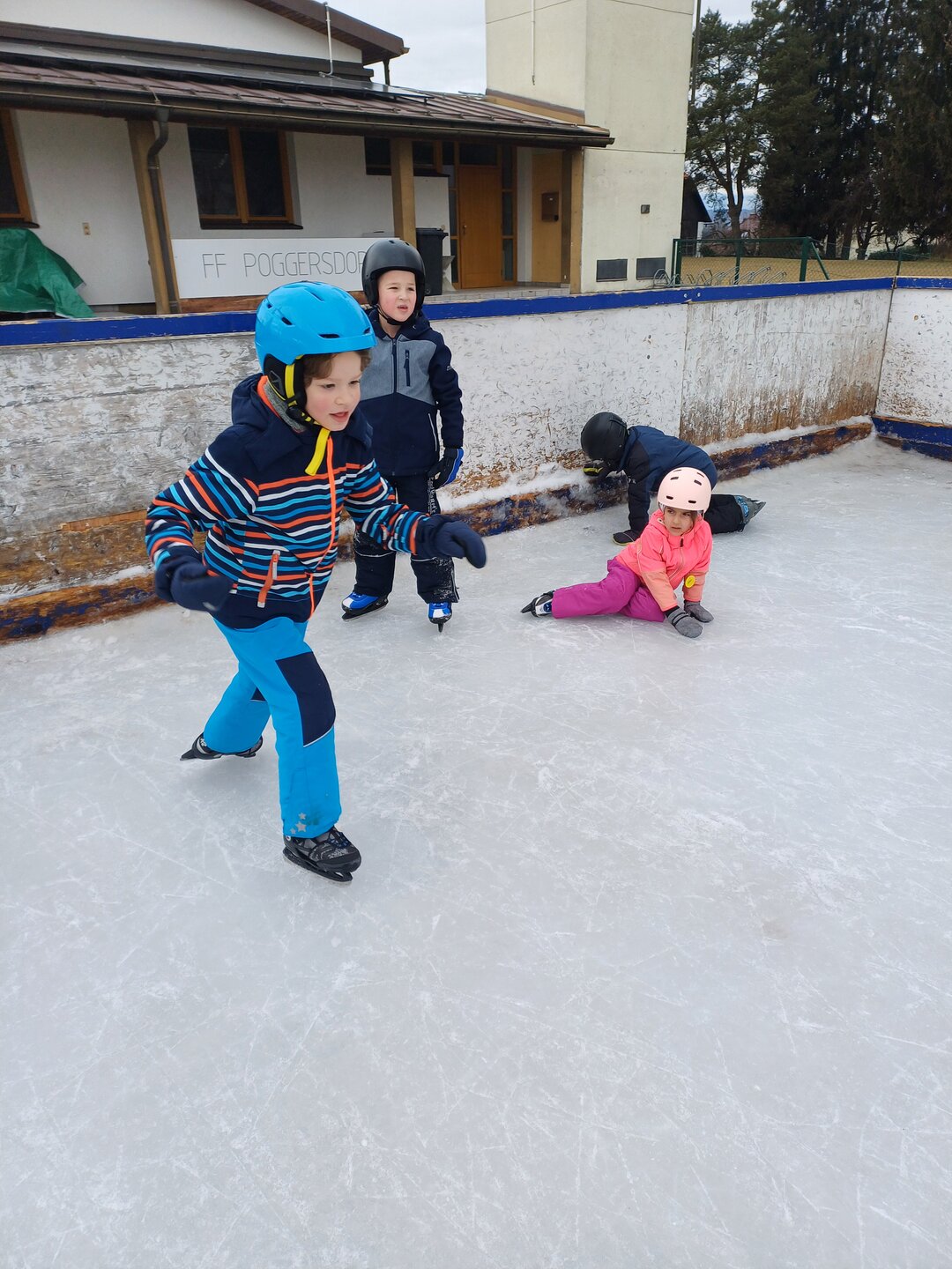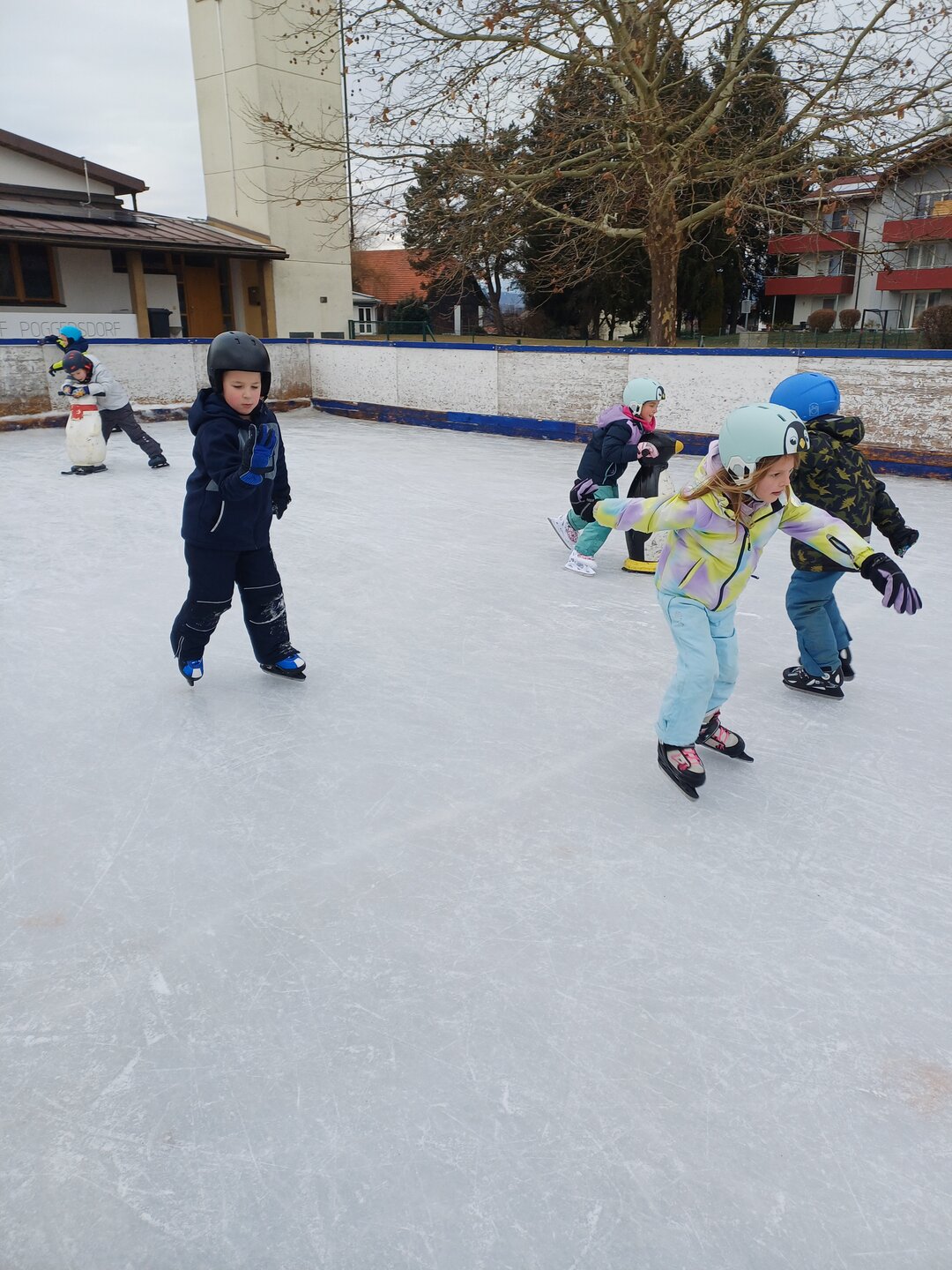 Mit viel Spaß verbringt die 1a Klasse gerne ihre Turnstunden am Eislaufplatz.