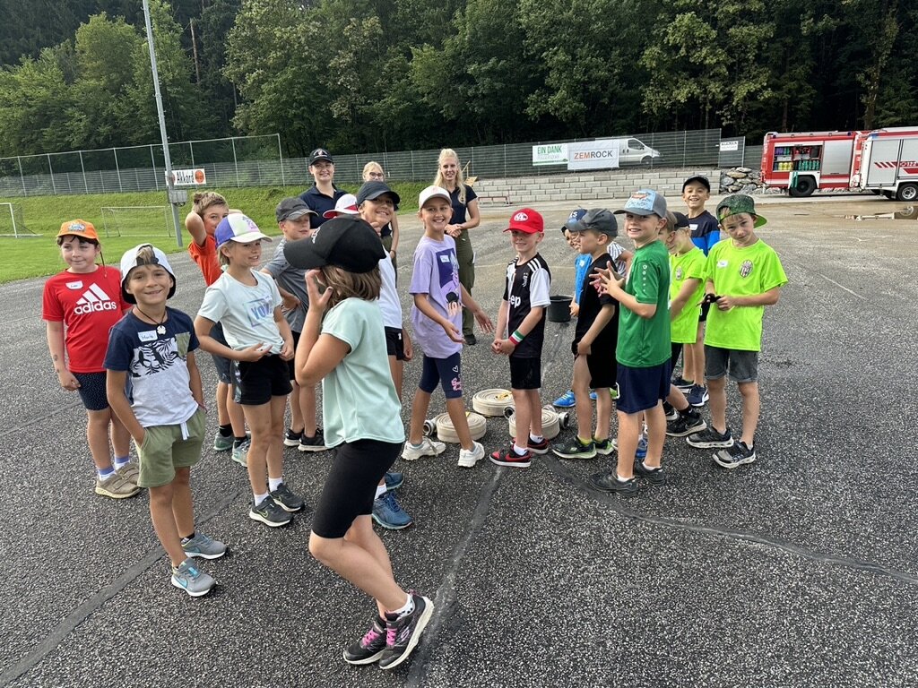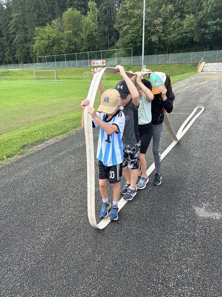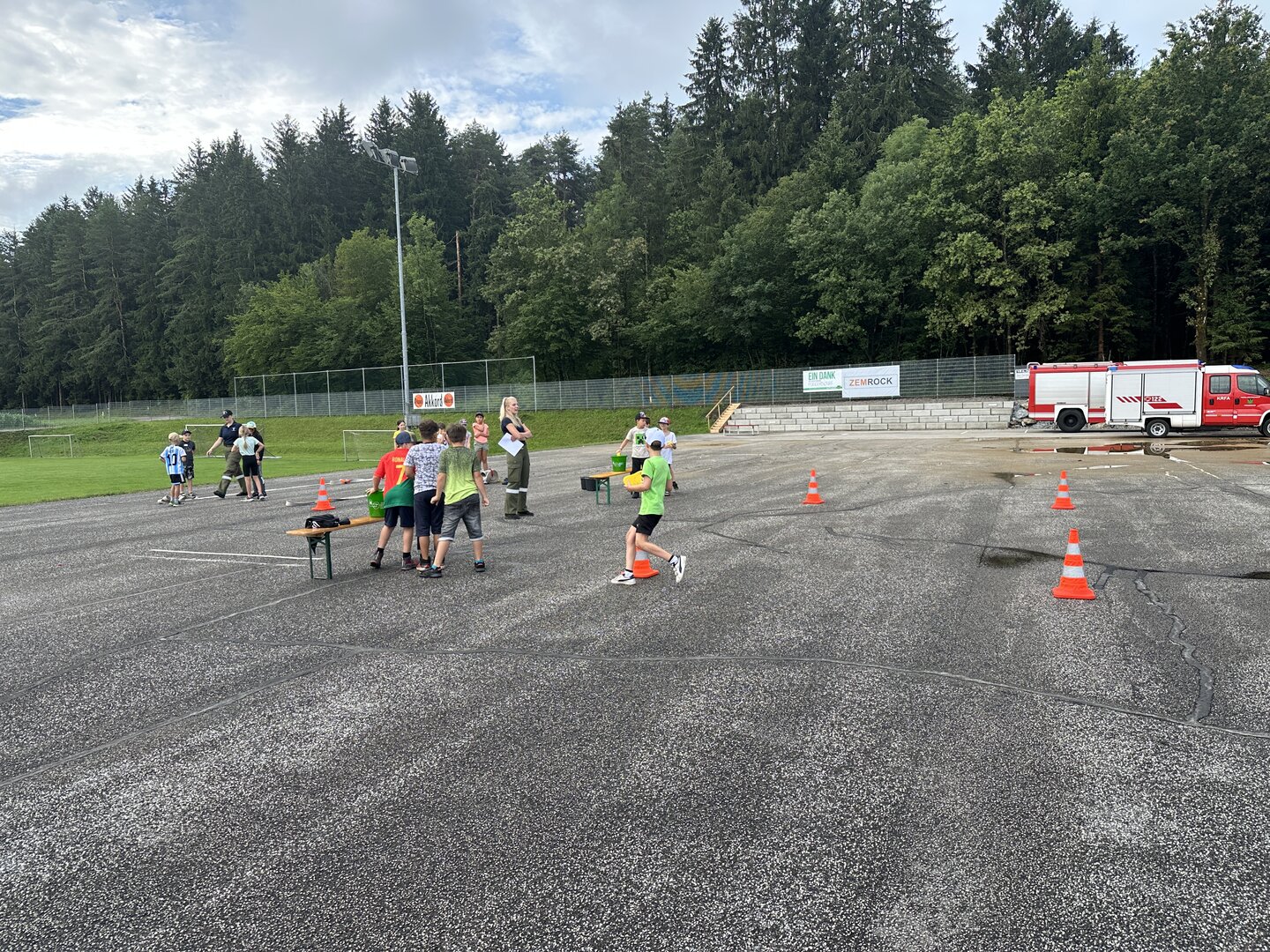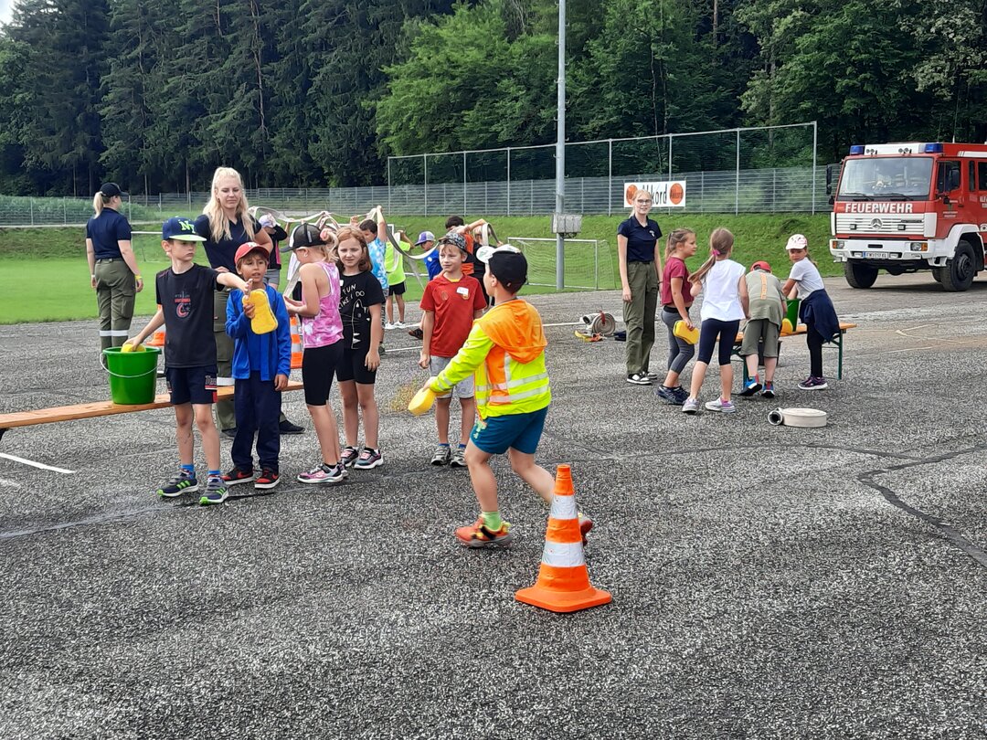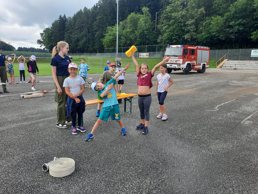 Die Kinder konnten verschieden Sportarten ausprobieren. Es gab auch eine Station von der Feuerwehr. Ein paar Kinder hatten sogar die Möglichkeit eine Runde im Feuerwehrauto mitzufahren.