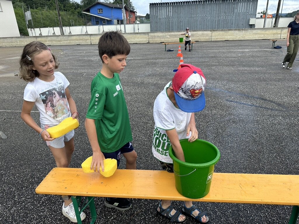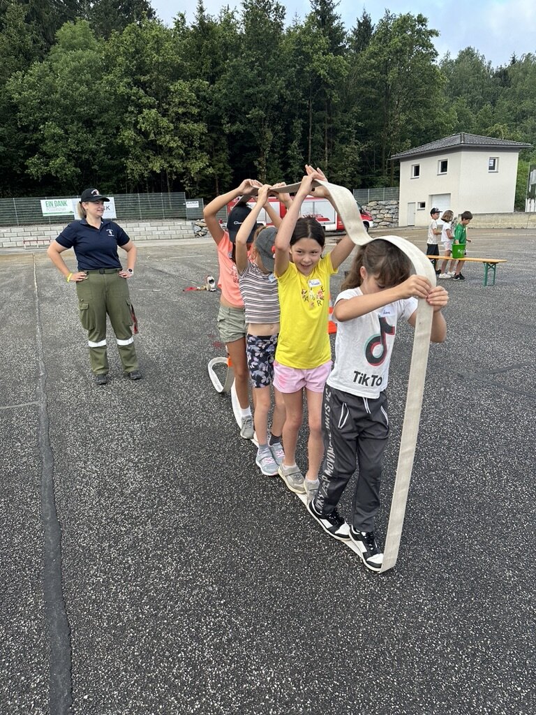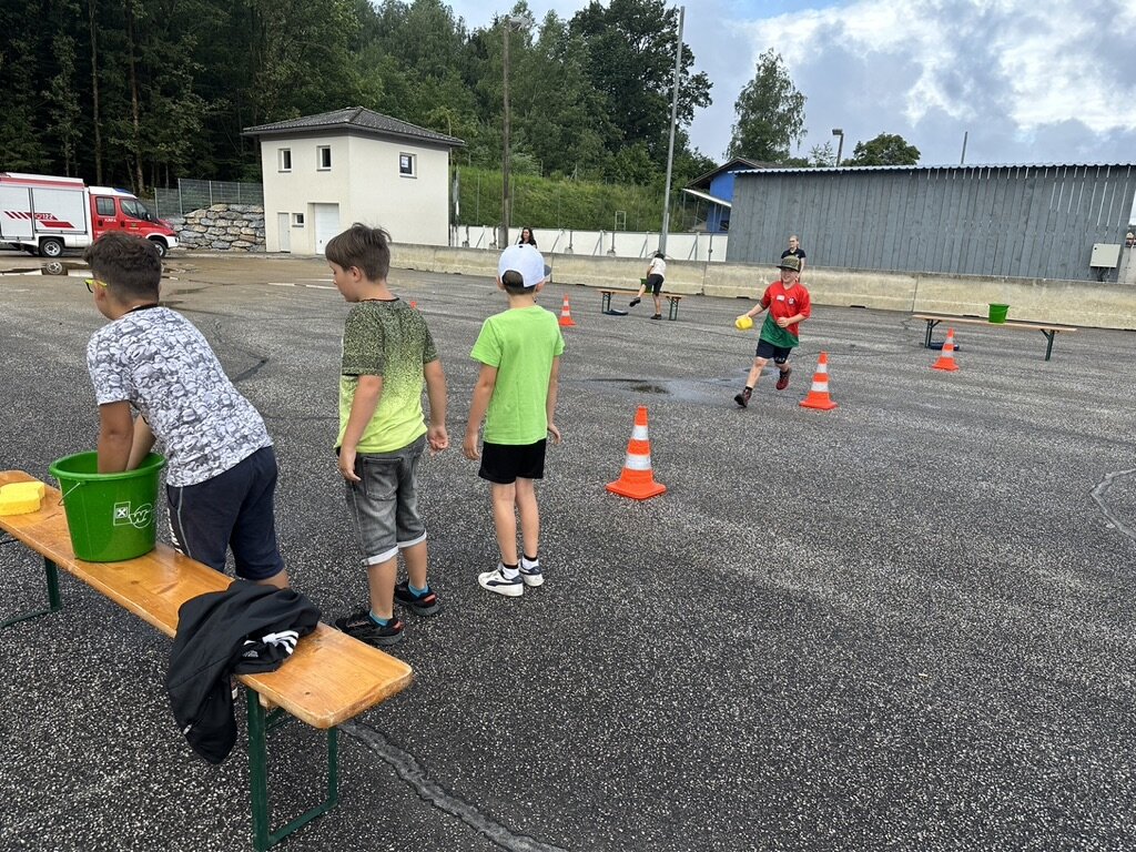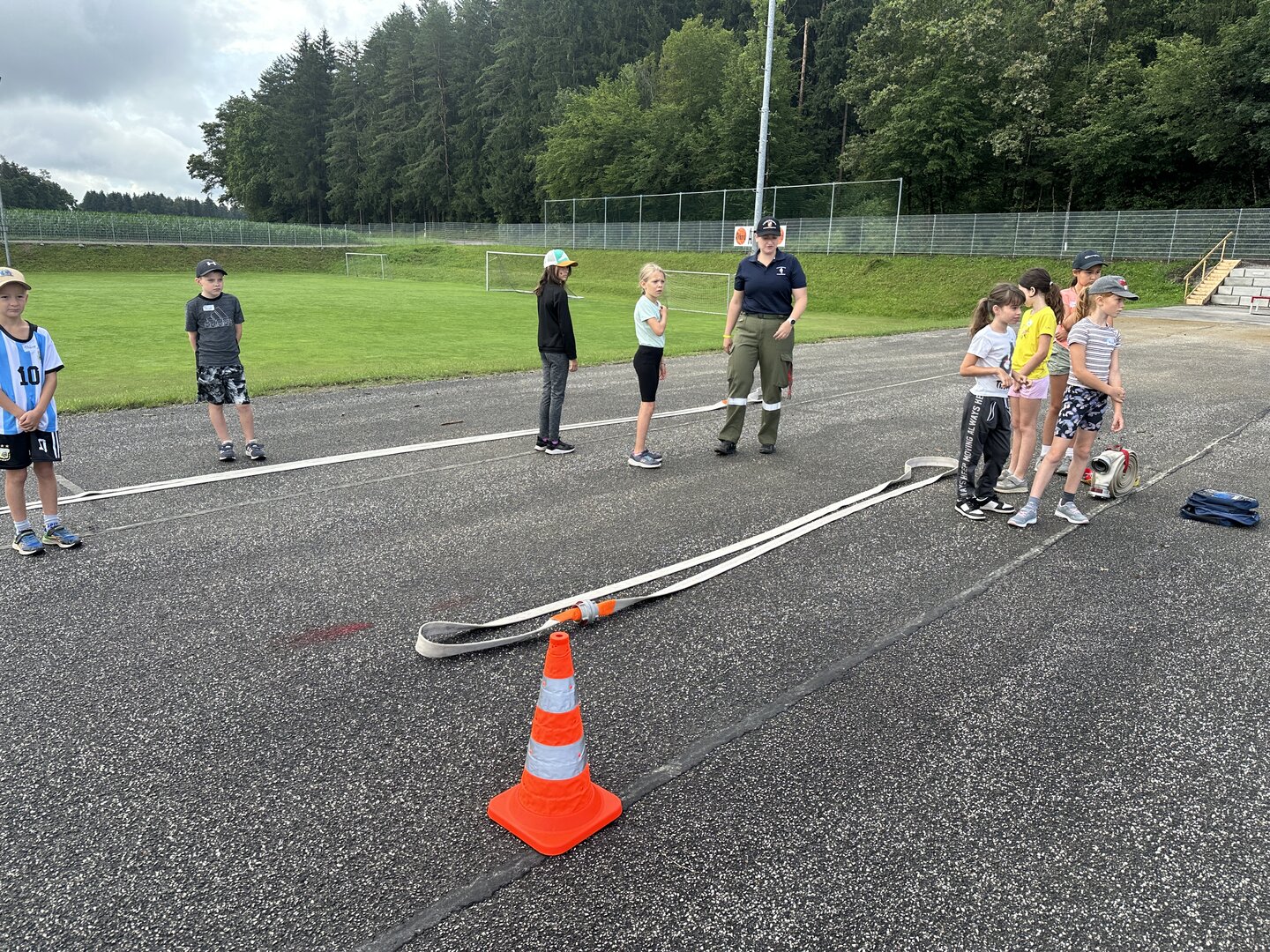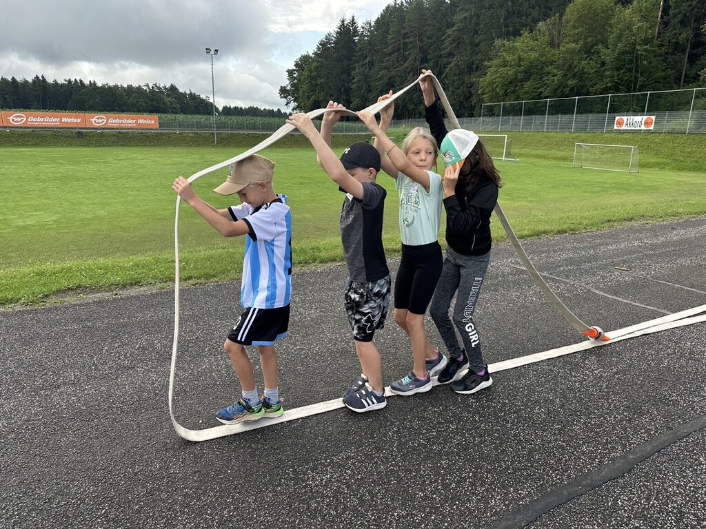 Die Kinder konnten verschieden Sportarten ausprobieren. Es gab auch eine Station von der Feuerwehr. Ein paar Kinder hatten sogar die Möglichkeit eine Runde im Feuerwehrauto mitzufahren.