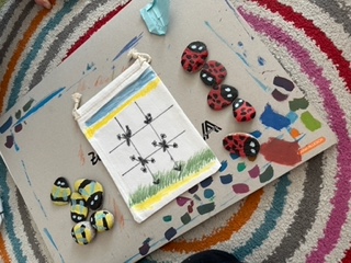 Mit viel Fantasie und Geschick bemalten die Schülerinnen und Schüler ihre Spielsteine in bunten Farben und Mustern. Anschließend wurden alle Spielsets in selbst gestalteten Stoffsäckchen verpackt – praktisch zum Mitnehmen und Spielen überall.