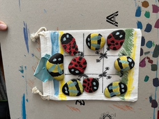 Die Klasse 4a hat im Rahmen des Technik-und-Design-Unterrichts ein kreatives Projekt umgesetzt: Tic Tac Toe mit bemalten Steinen!